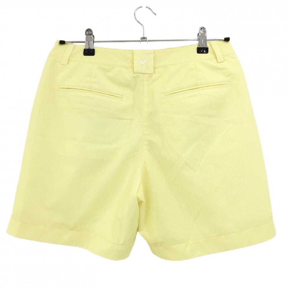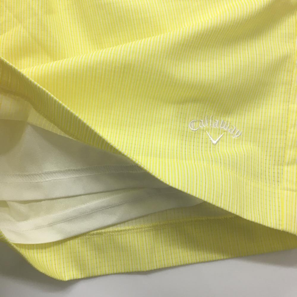 【美品】キャロウェイ キュロットスカート イエロー×白 ストライプ柄 格子織生地 裾ロゴ レディース L ゴルフウェア Callaway