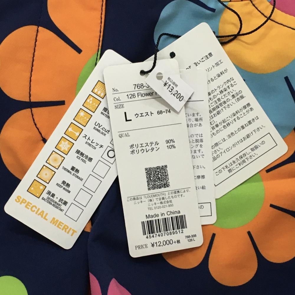 【新品】ラウドマウス ショートパンツ ネイビー×マルチカラー 花柄 吸汗速乾 ストレッチ レディース L ゴルフウェア LOUDMOUTH
