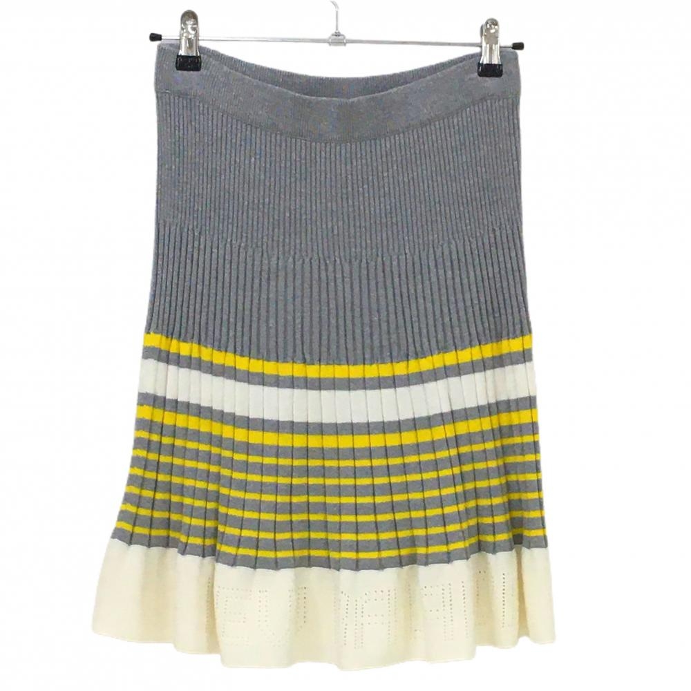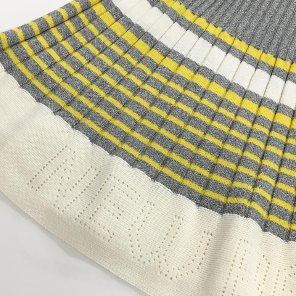 【美品】ニューバランスゴルフ ニットスカート グレー×イエロー リブ織 裾ボーダー レディース 1(M) ゴルフウェア New Balance
