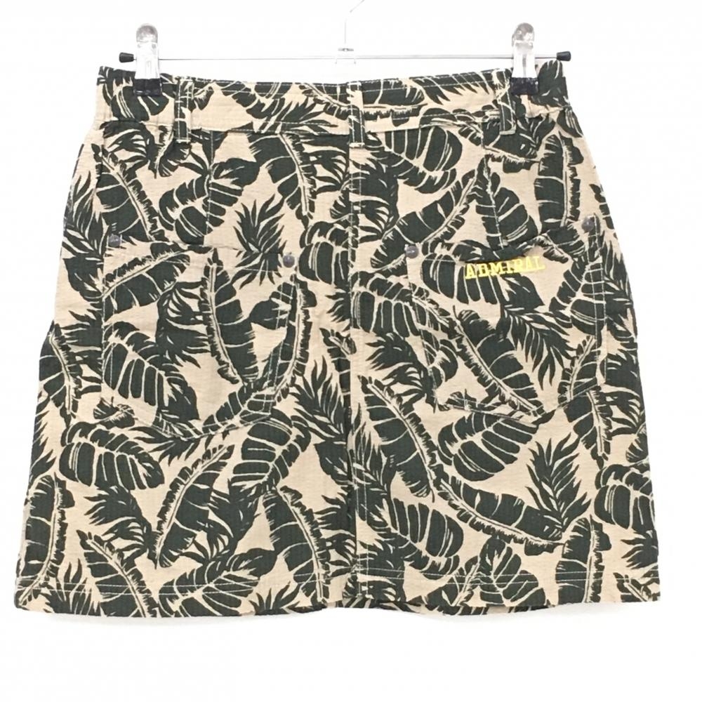 【超美品】アドミラル スカート ベージュ×ダークグリーン リーフ柄 サッカー生地 レディース L ゴルフウェア Admiral