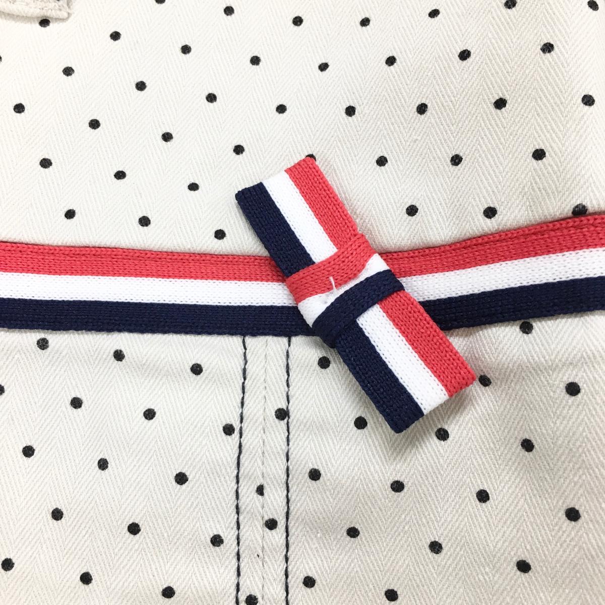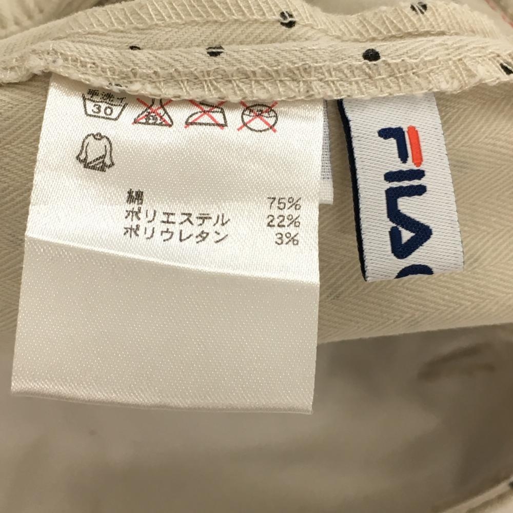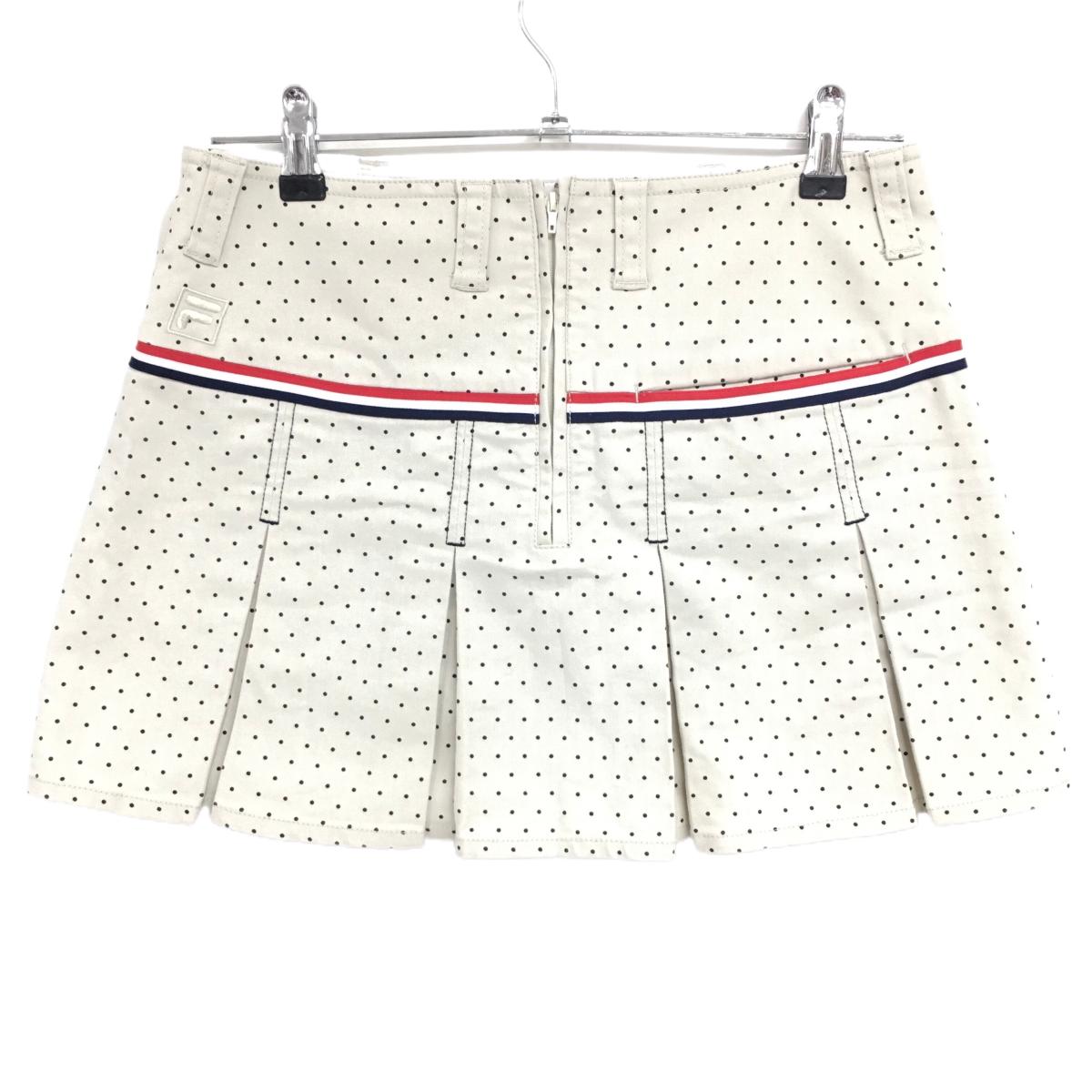 【美品】フィラゴルフ プリーツスカート アイボリー×黒 ドット柄 トリコロールリボン レディース M ゴルフウェア FILA GOLF