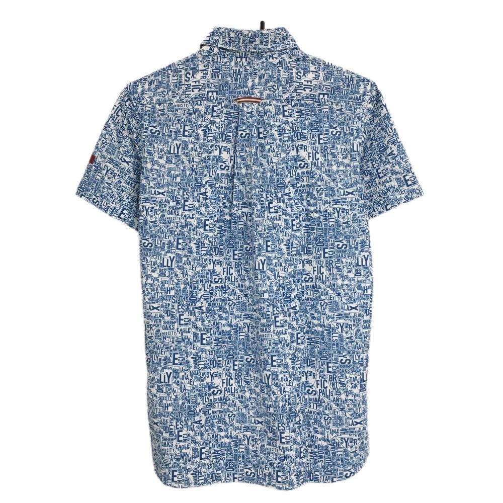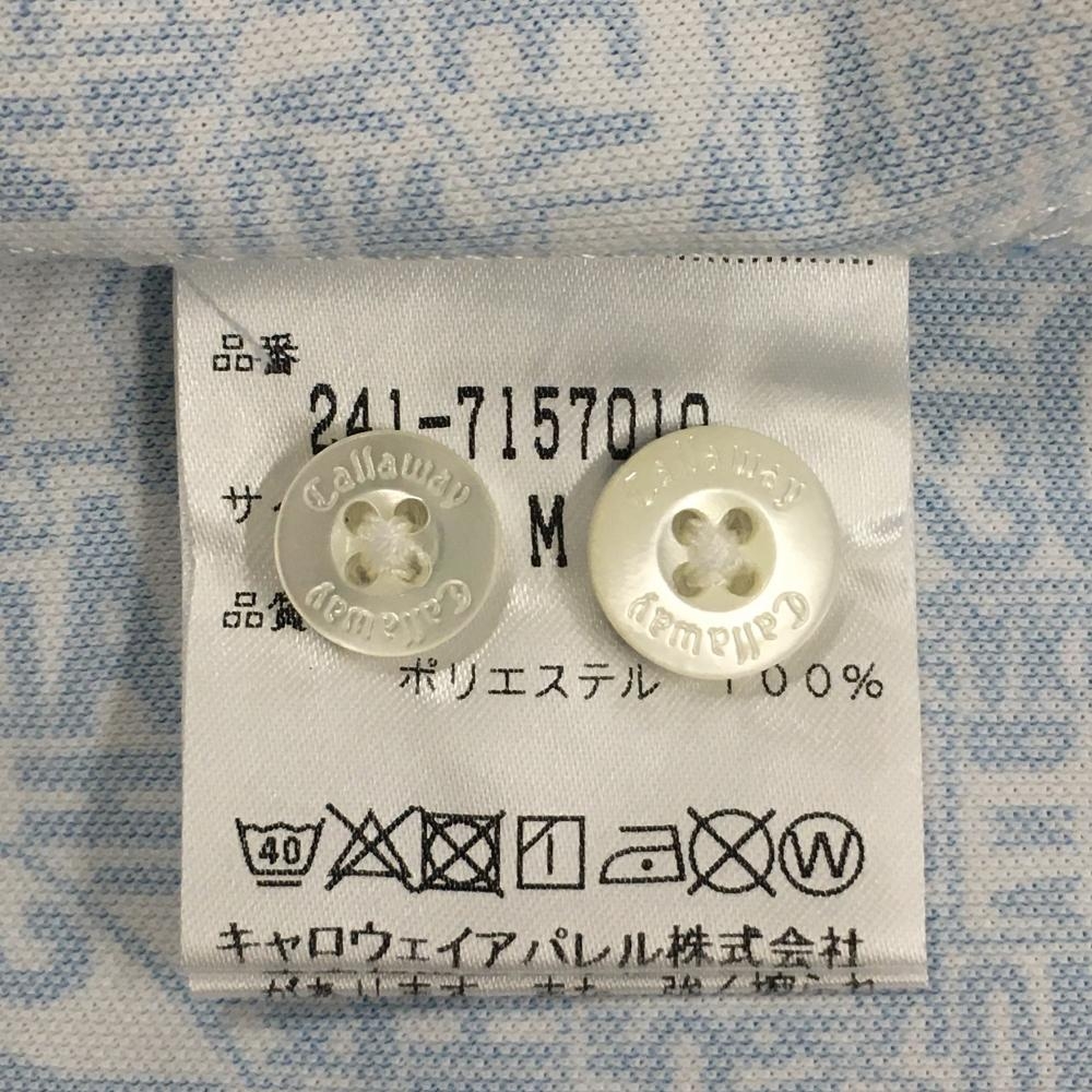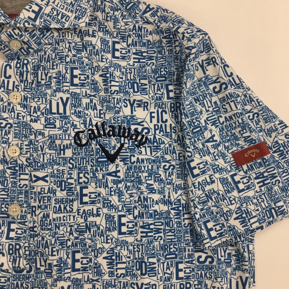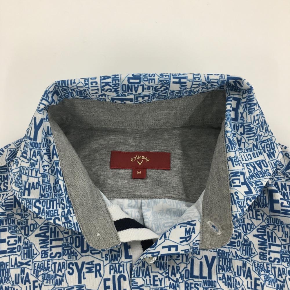 【美品】キャロウェイ レッドレーベル 半袖ポロシャツ 白×ブルー 英字総柄 メンズ M ゴルフウェア Callaway