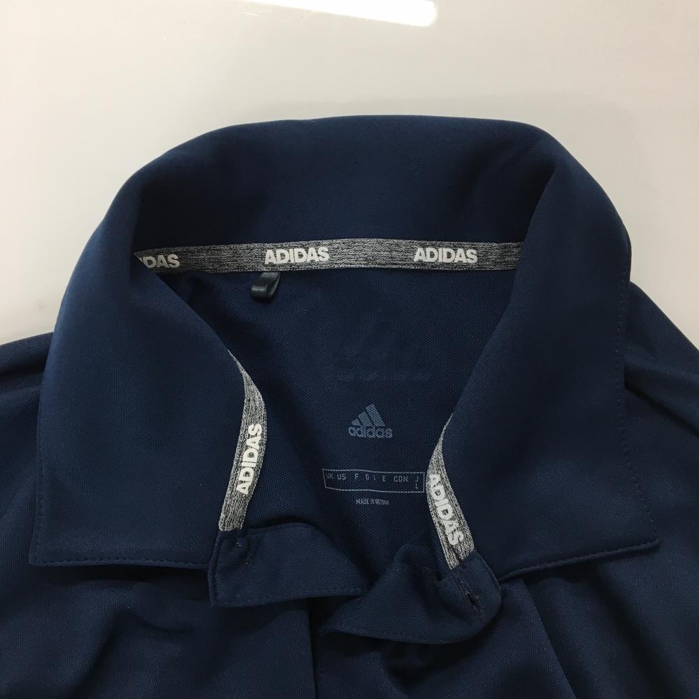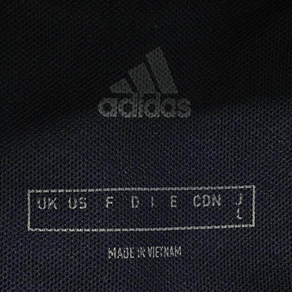 【美品】アディダス 半袖ポロシャツ ネイビー×白 袖3ライン メンズ L ゴルフウェア adidas