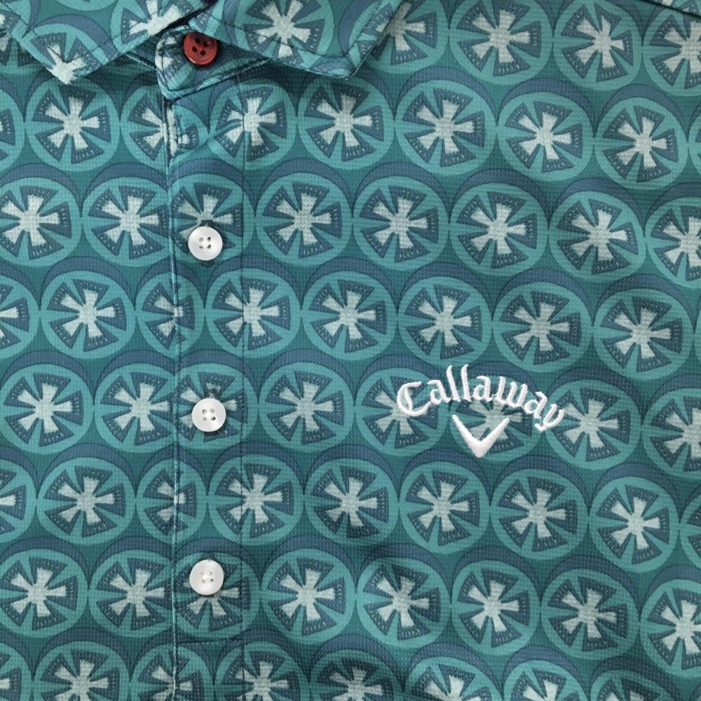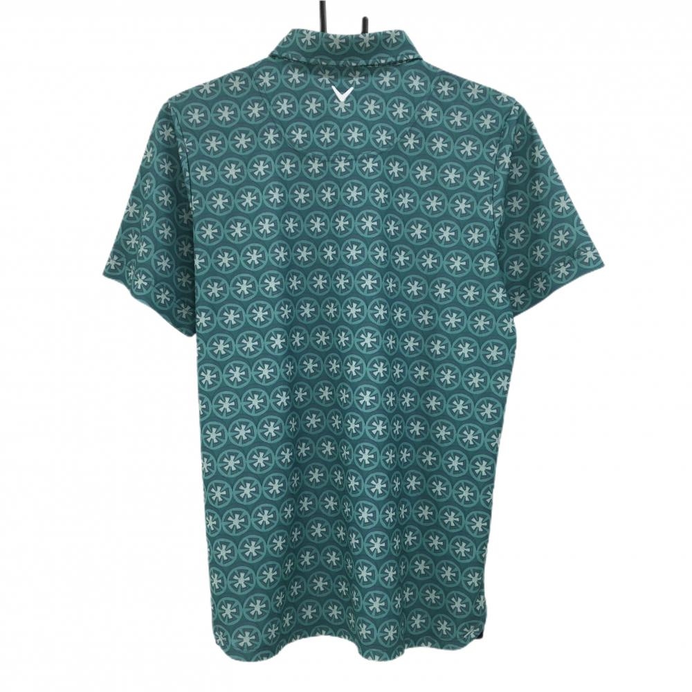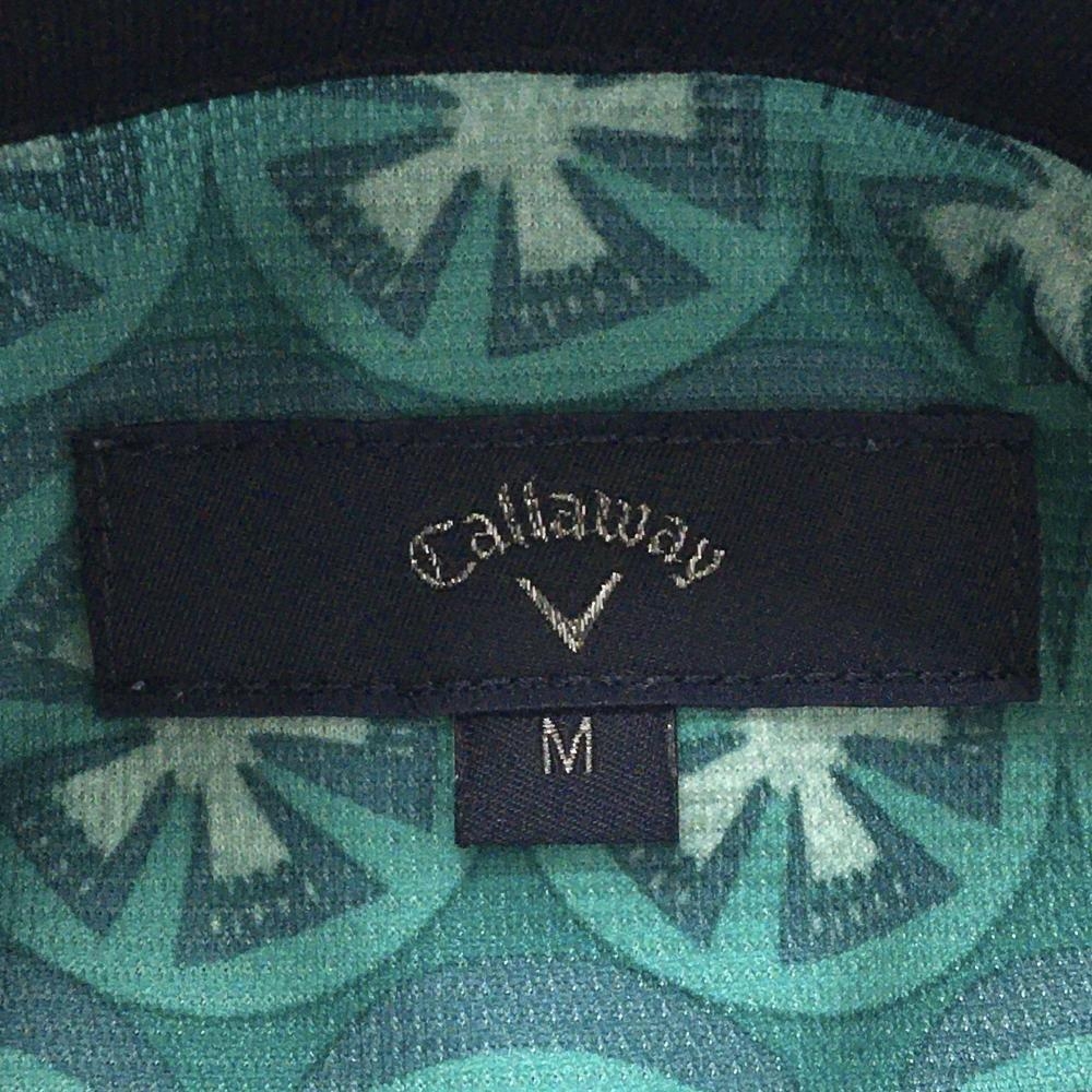 【美品】キャロウェイ 半袖ポロシャツ グリーン 総柄 ロゴ刺しゅう メンズ M ゴルフウェア Callaway