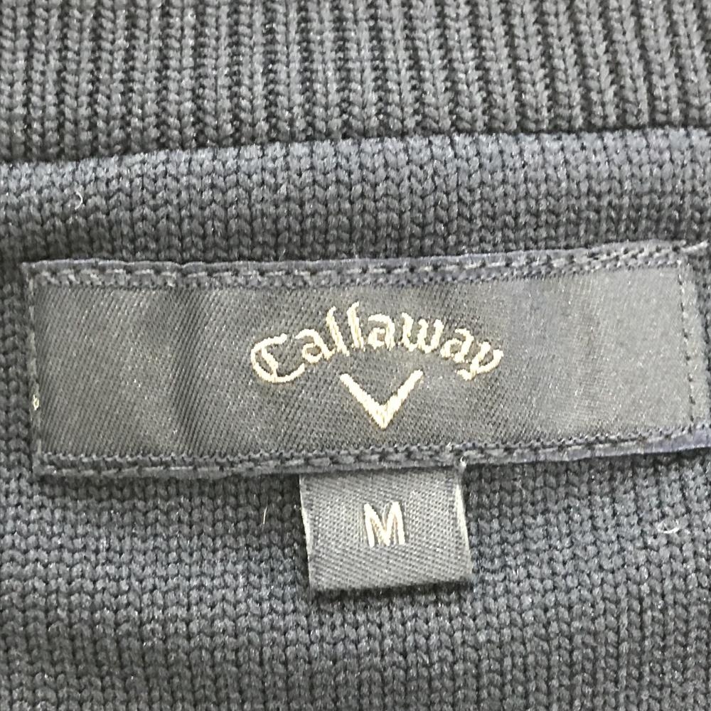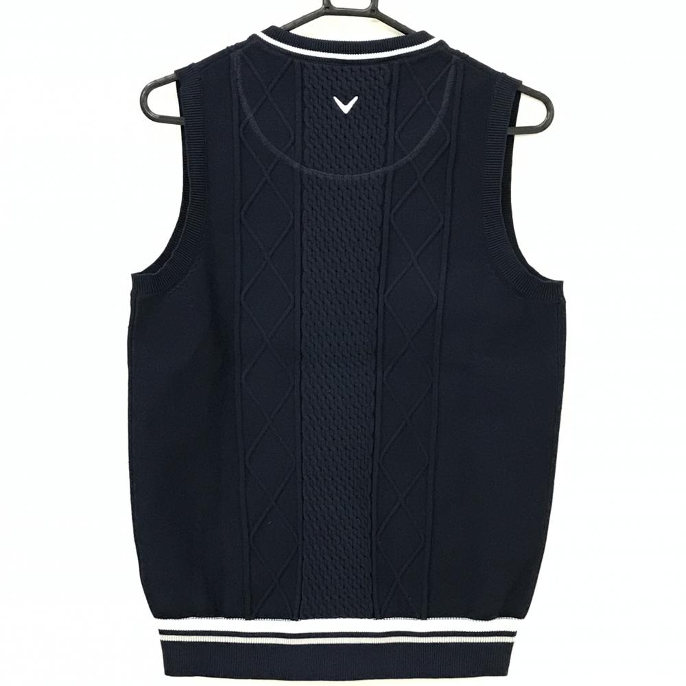 【美品】キャロウェイ ニットベスト ネイビー×白 ダイヤ調編み Vネック ポリエステル100% メンズ M ゴルフウェア Callaway