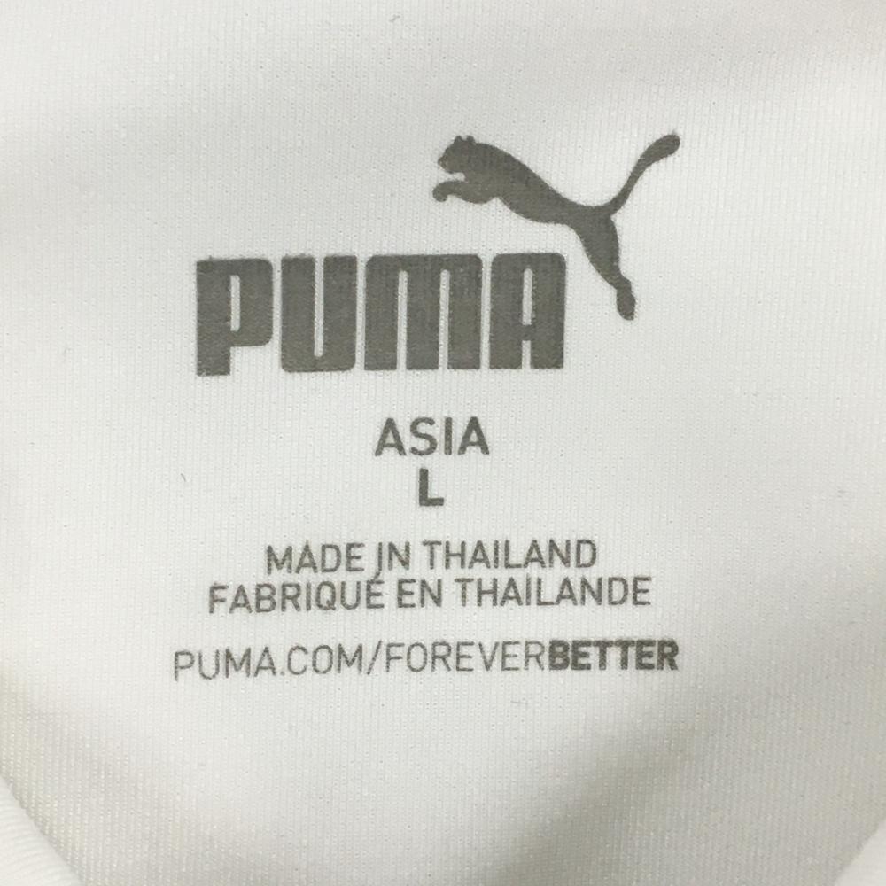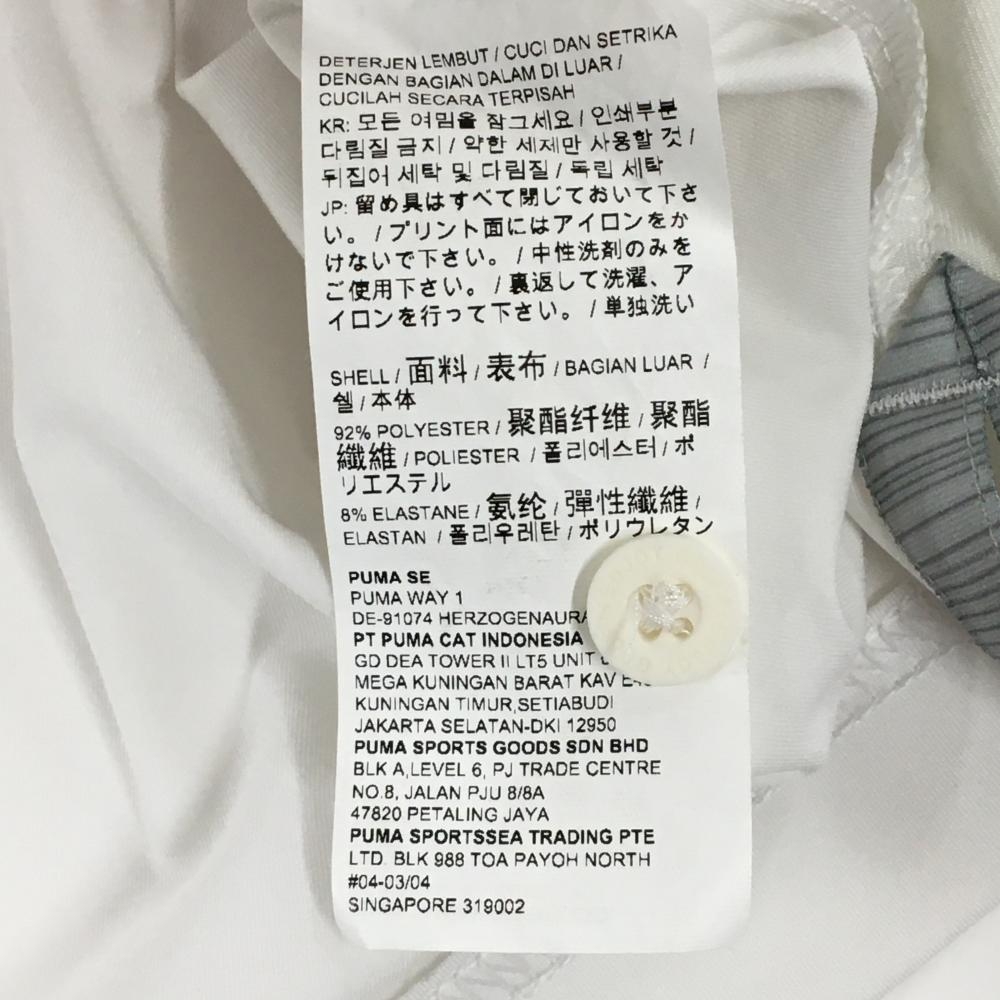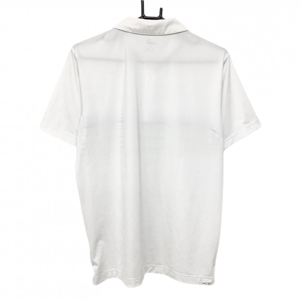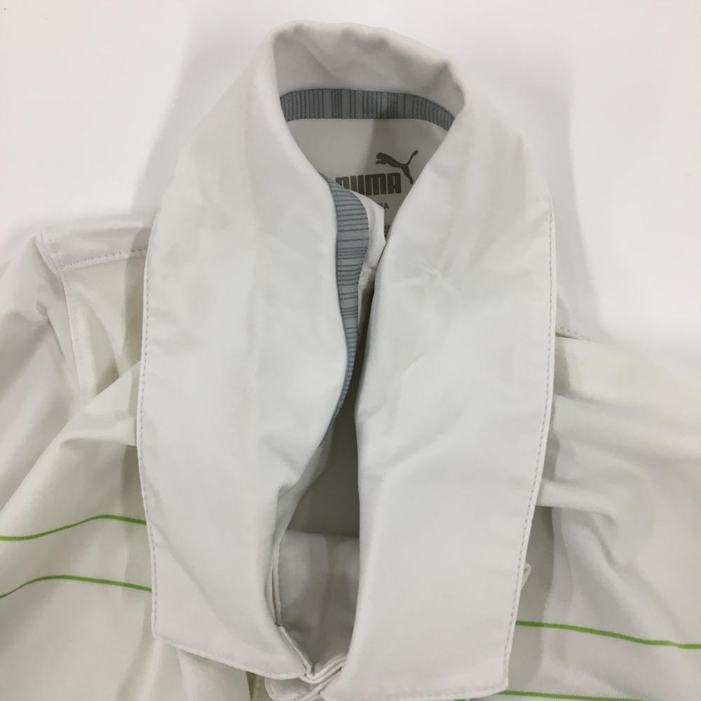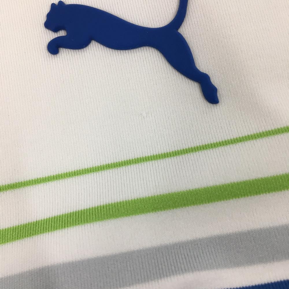 プーマ 半袖ポロシャツ 白×ライトグリーン×ネイビー 胸ボーダー メンズ L ゴルフウェア PUMA