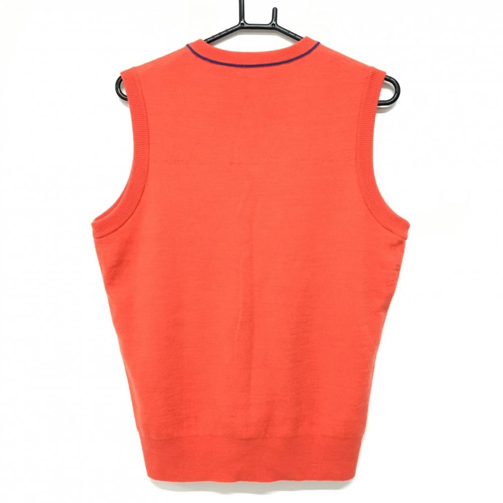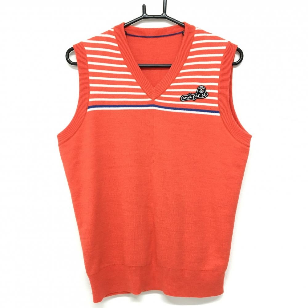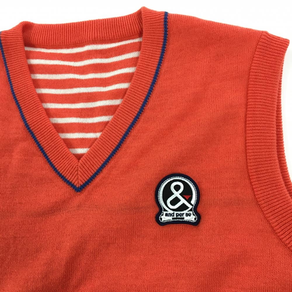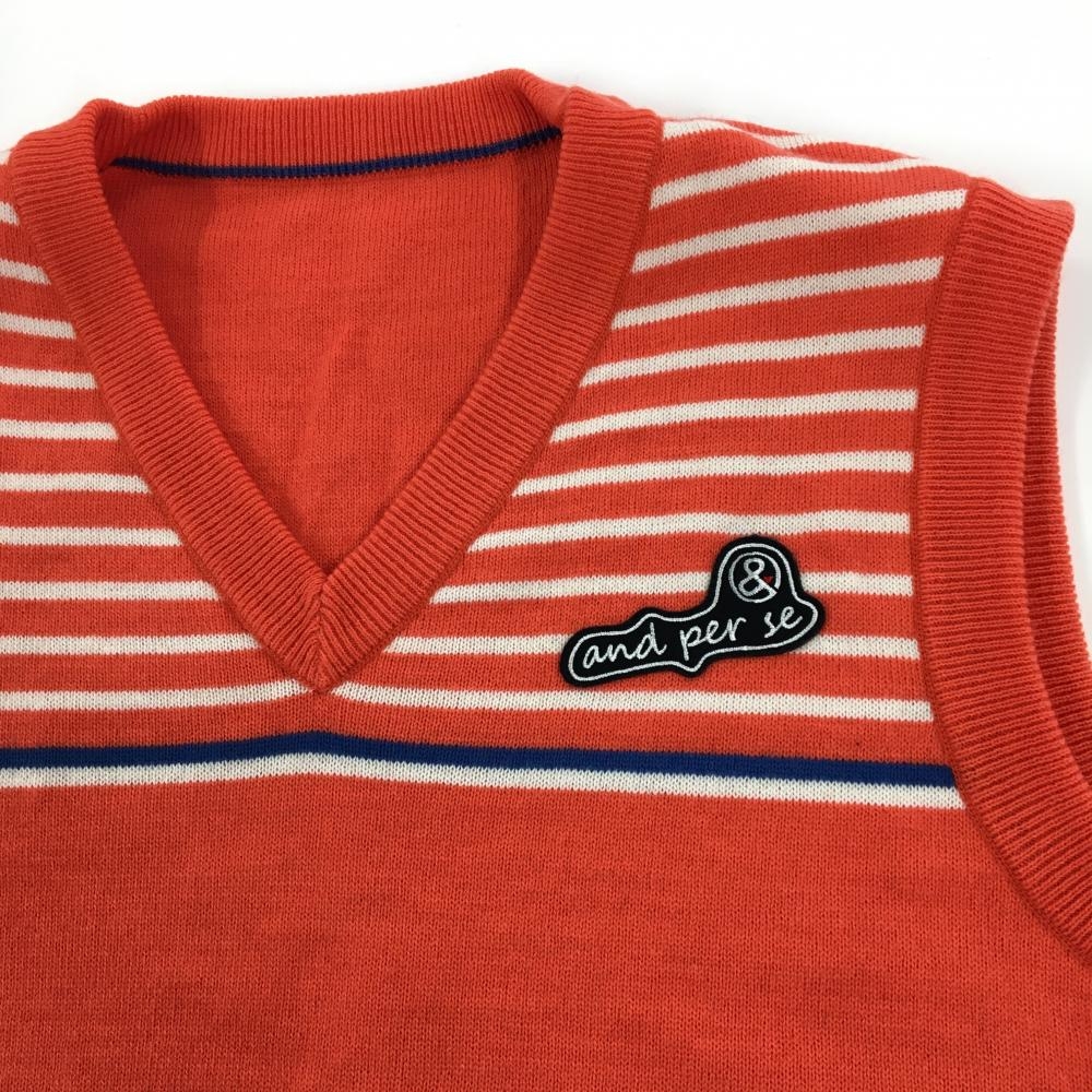 【超美品】アンパスィ リバーシブルニットベスト レッドオレンジ系 ウール混 Vネック ワッペン メンズ M ゴルフウェア and per se