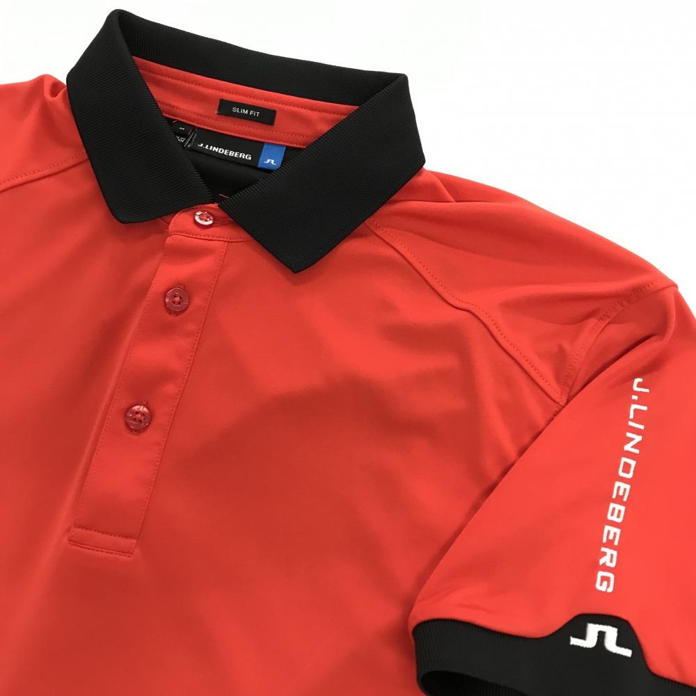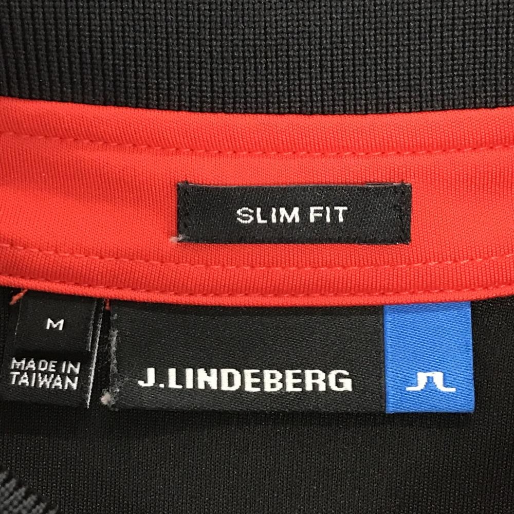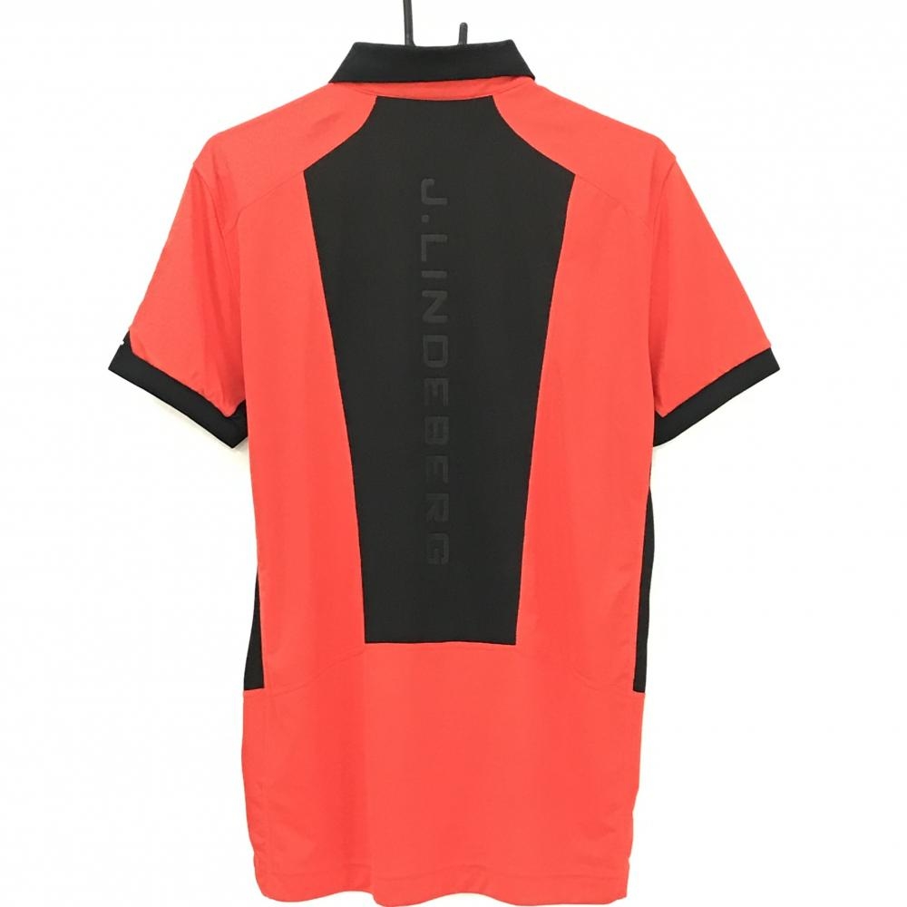 【美品】ジェイリンドバーグ 半袖ポロシャツ レッド×黒 背面・脇下メッシュ調 ロゴ刺しゅう メンズ M ゴルフウェア J.LINDEBERG