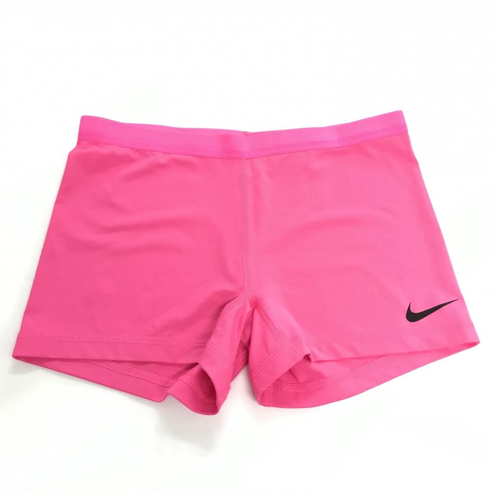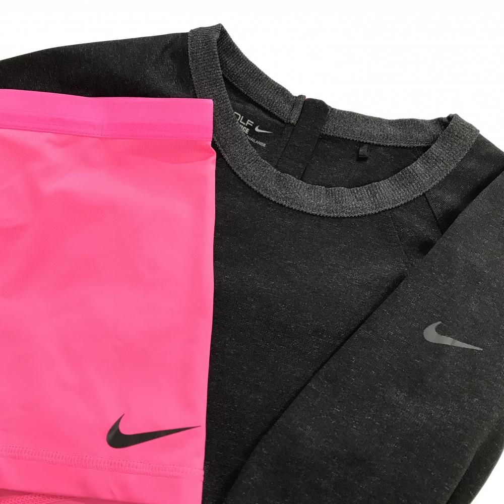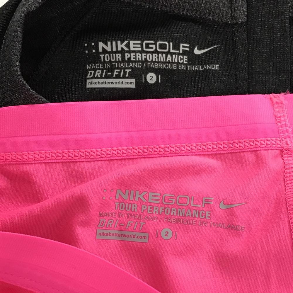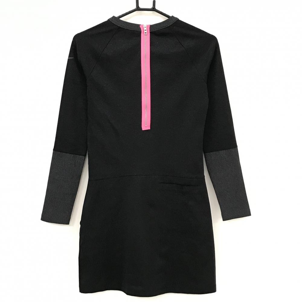 【美品】ナイキゴルフ ワンピース 杢ダークグレー系×蛍光ピンク インナーパンツ付き 後ろハーフジップ レディース 2 ゴルフウェア NIKE