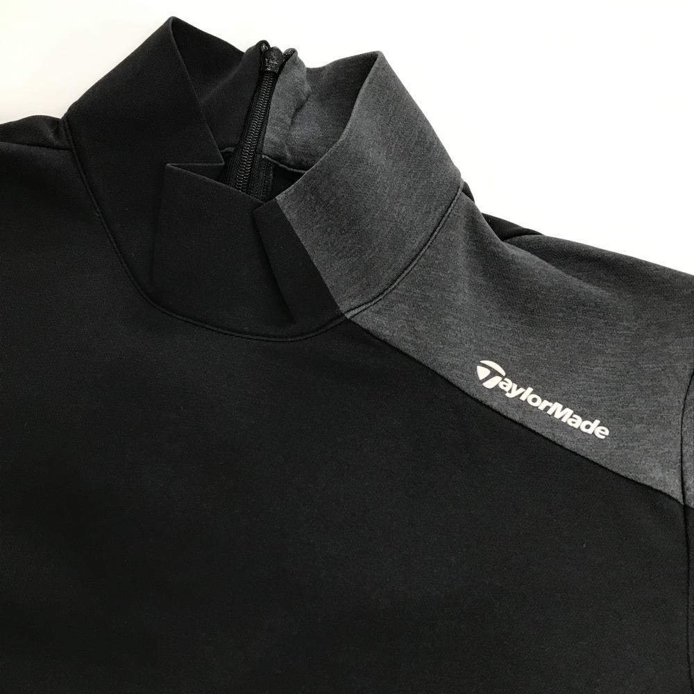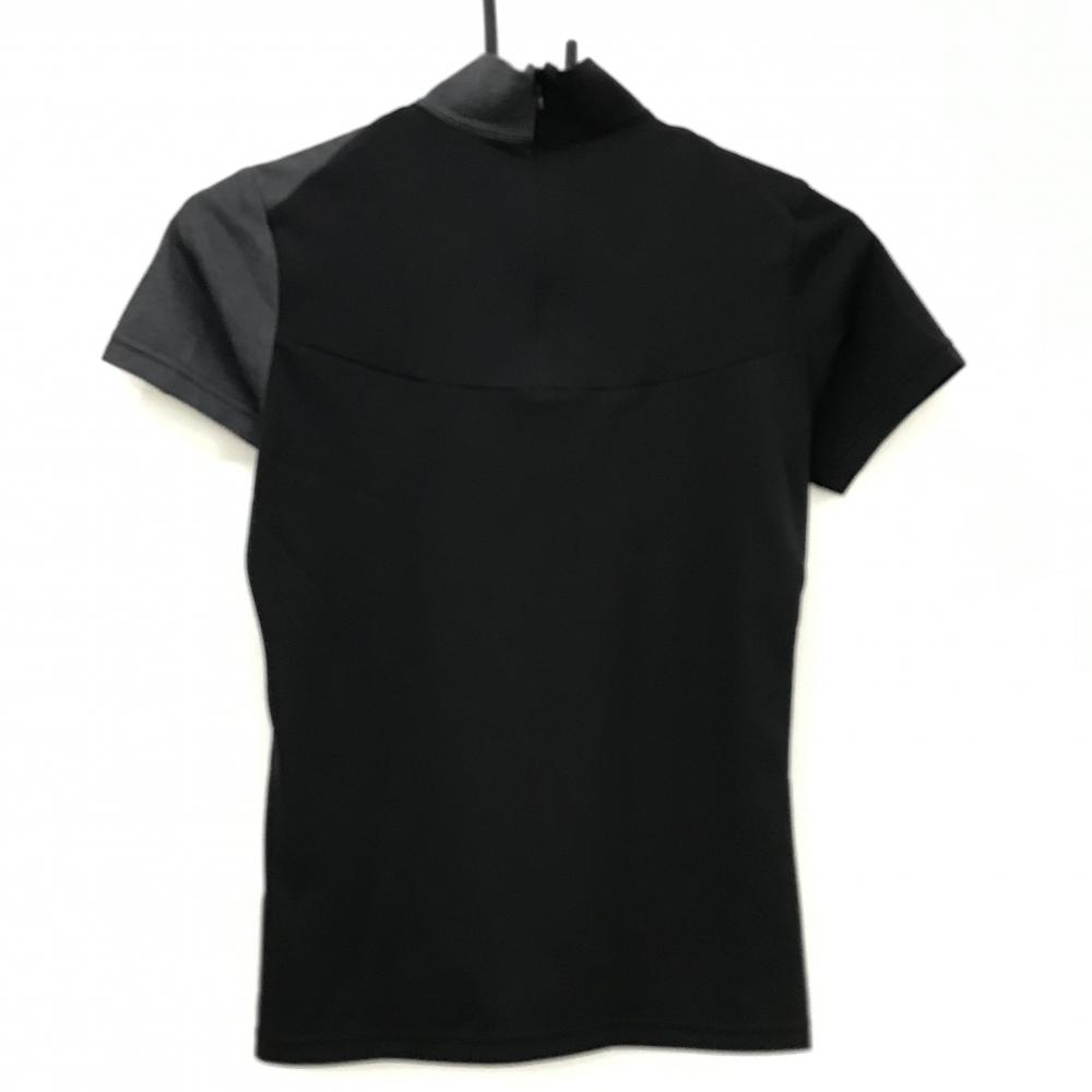 【超美品】テーラーメイド 半袖ハイネックシャツ 黒×杢グレー 後ろハーフジップ ロゴ白 レディース XS ゴルフウェア TaylorMade