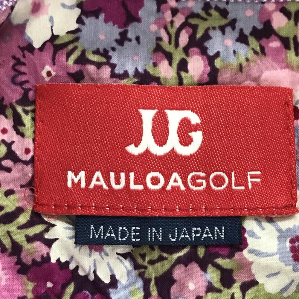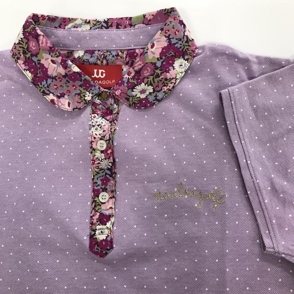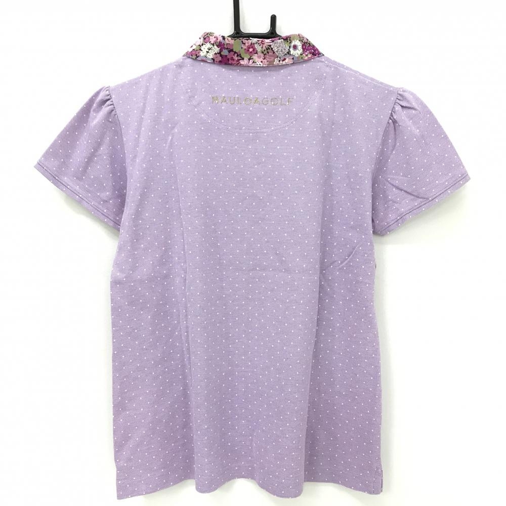 【超美品】マウロアゴルフ 半袖ポロシャツ パープル×白 ドット 襟・前立て花柄 レディース M ゴルフウェア MAULOA GOLF