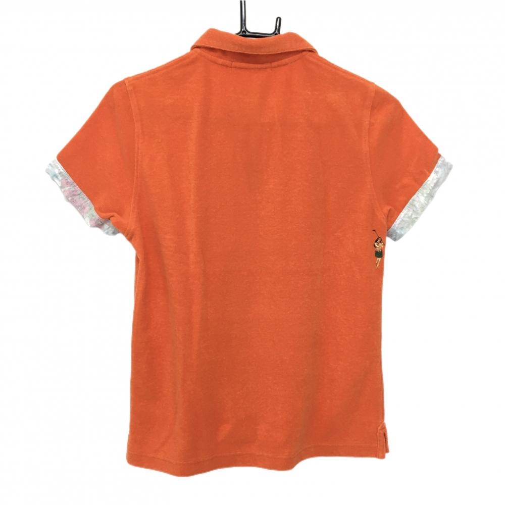 マークアンドロナ 半袖ポロシャツ オレンジ パイル地 胸ポケット レディース M ゴルフウェア MARK&LONA