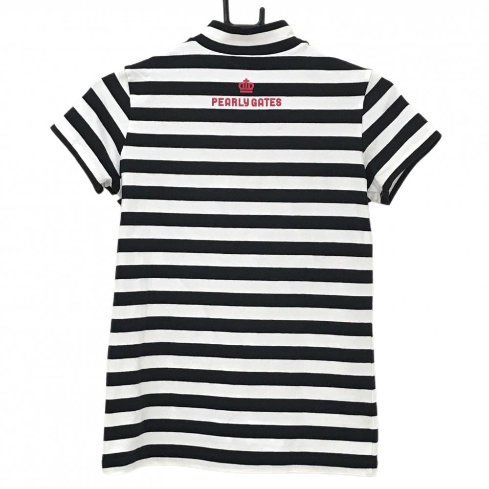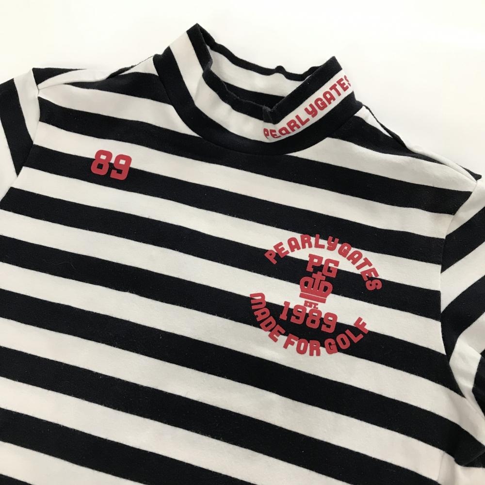 【美品】パーリーゲイツ 半袖ハイネックシャツ ネイビー×白 ロゴ ストレッチ レディース 1(M) ゴルフウェア PEARLY GATES
