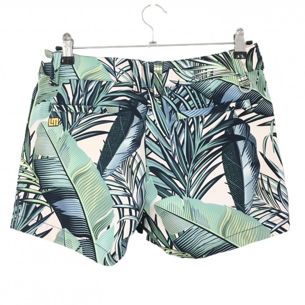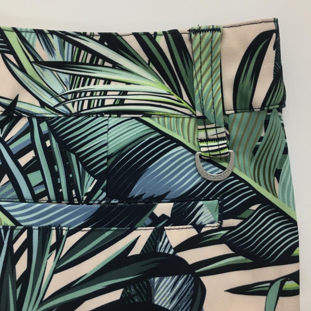 【超美品】ラウドマウス ショートパンツ ライトベージュ×ミントグリーン リーフ柄 フレンチハーバー レディース L ゴルフウェア LOUDMOUTH