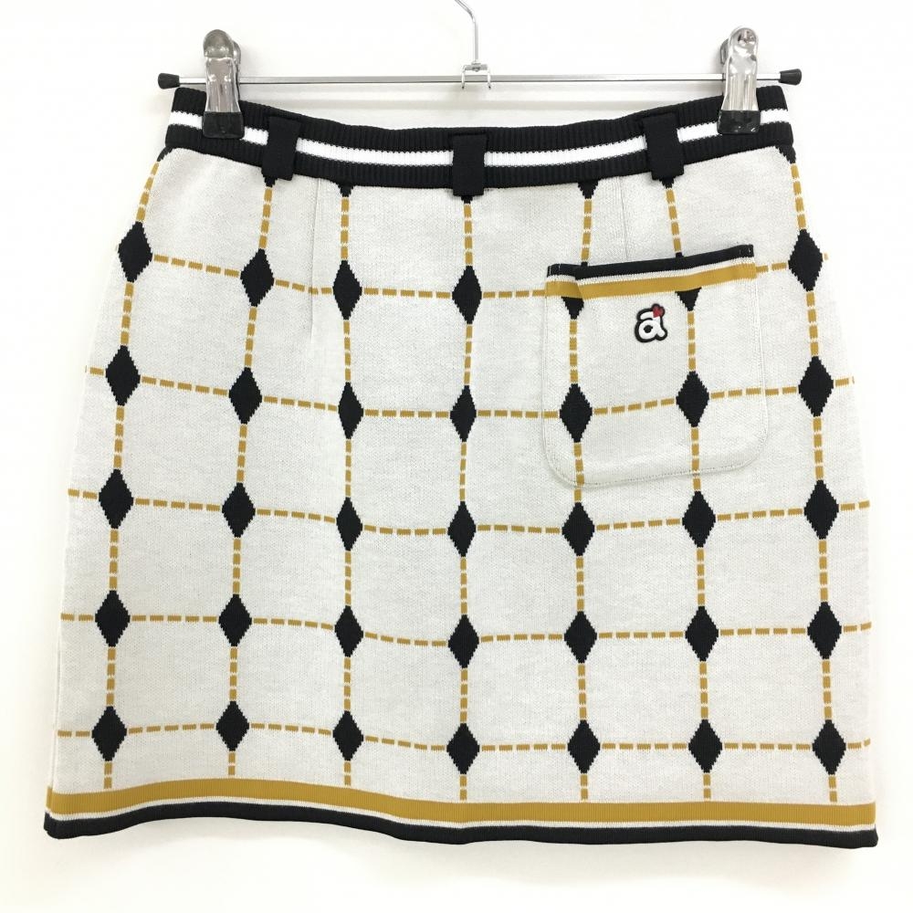 【超美品】アルチビオ ニットスカート 白×黒×ライトブラウン ダイヤ・格子柄 レディース 38(M) ゴルフウェア archivio
