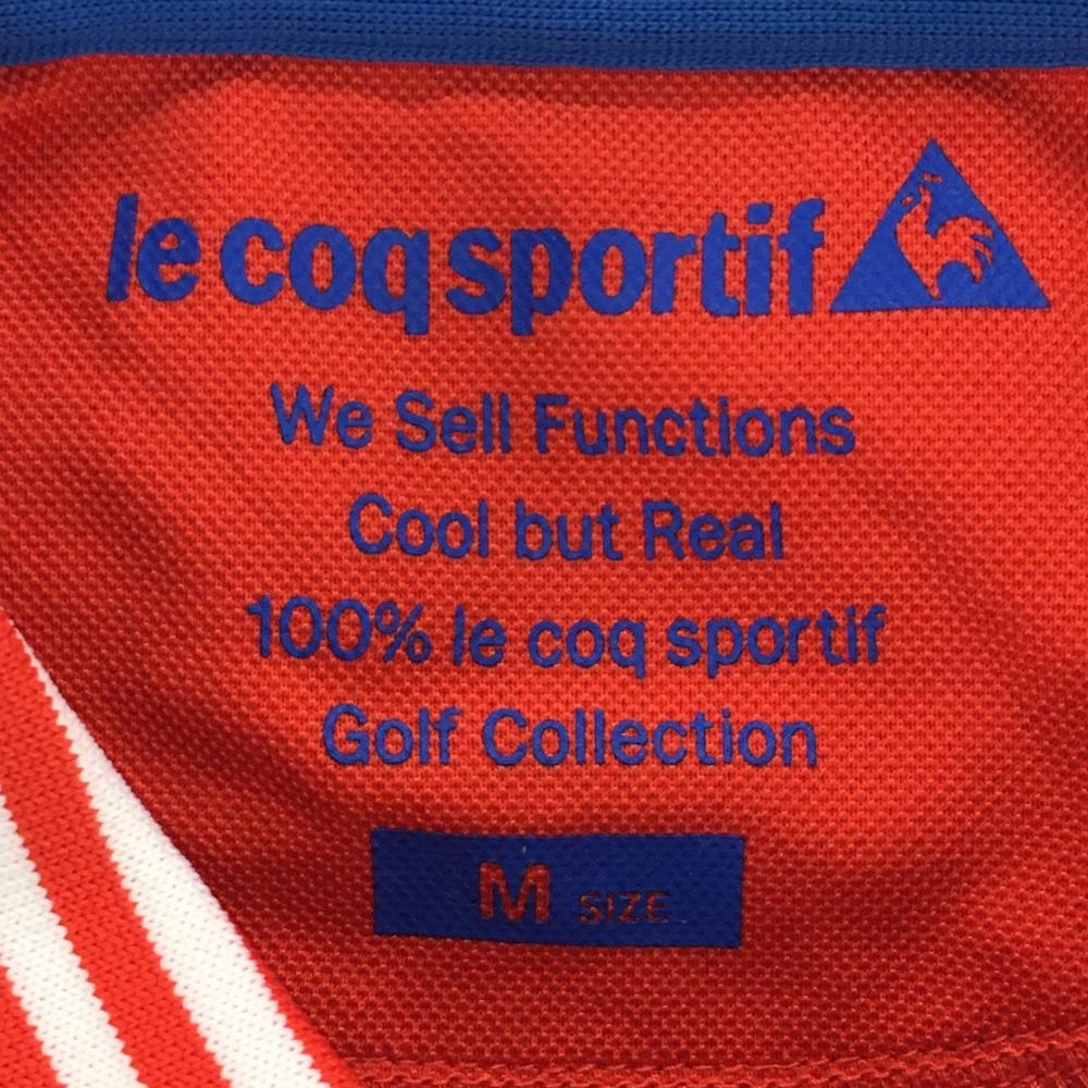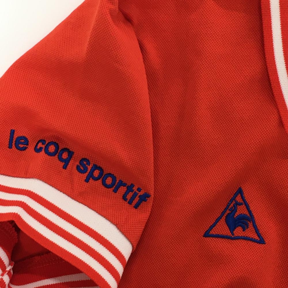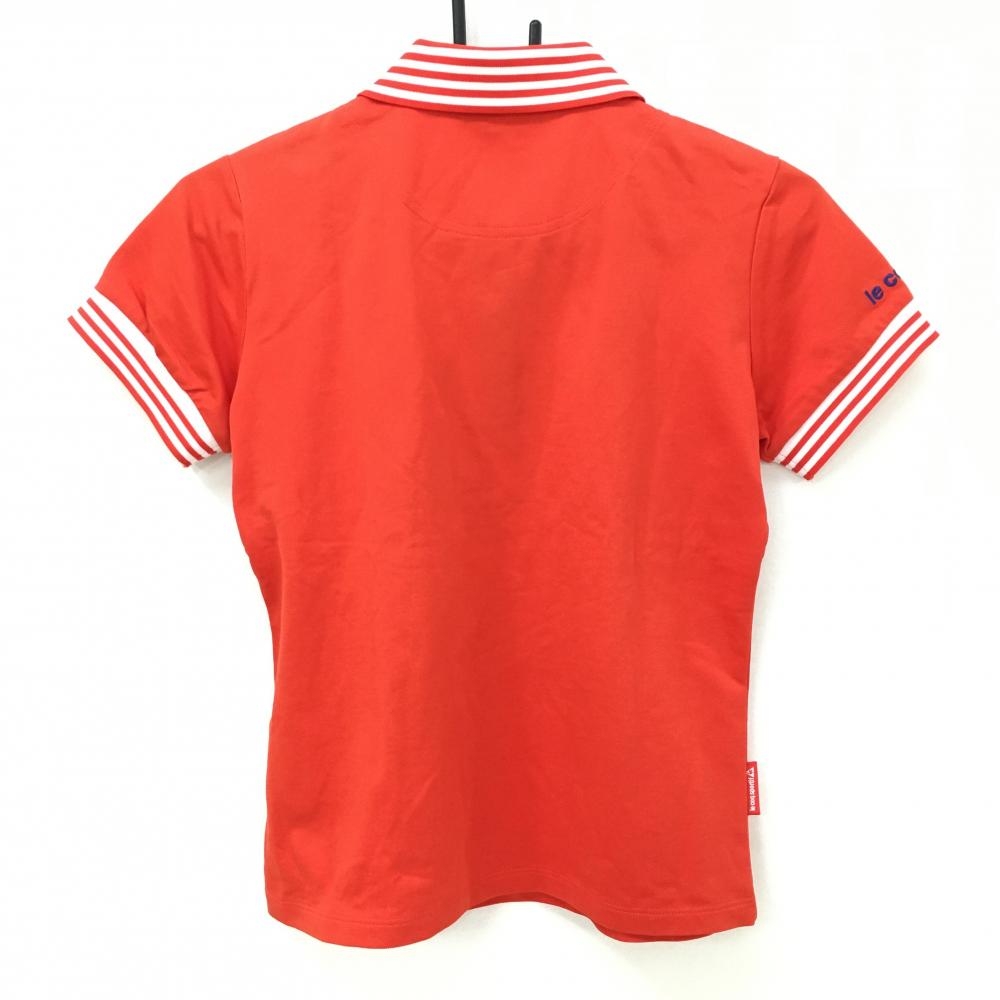 【美品】ルコックゴルフ 半袖ポロシャツ レッド×白 襟・袖口ボーダー ロゴブルー レディース M ゴルフウェア le coq sportif