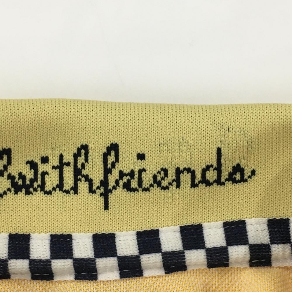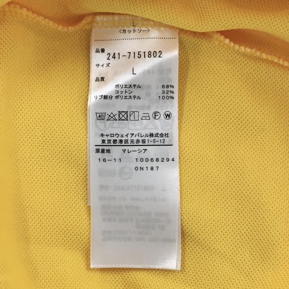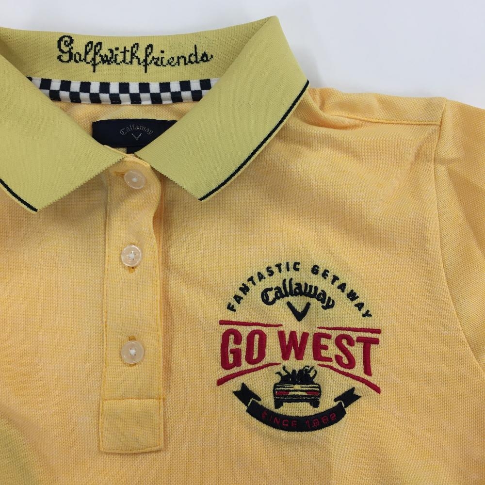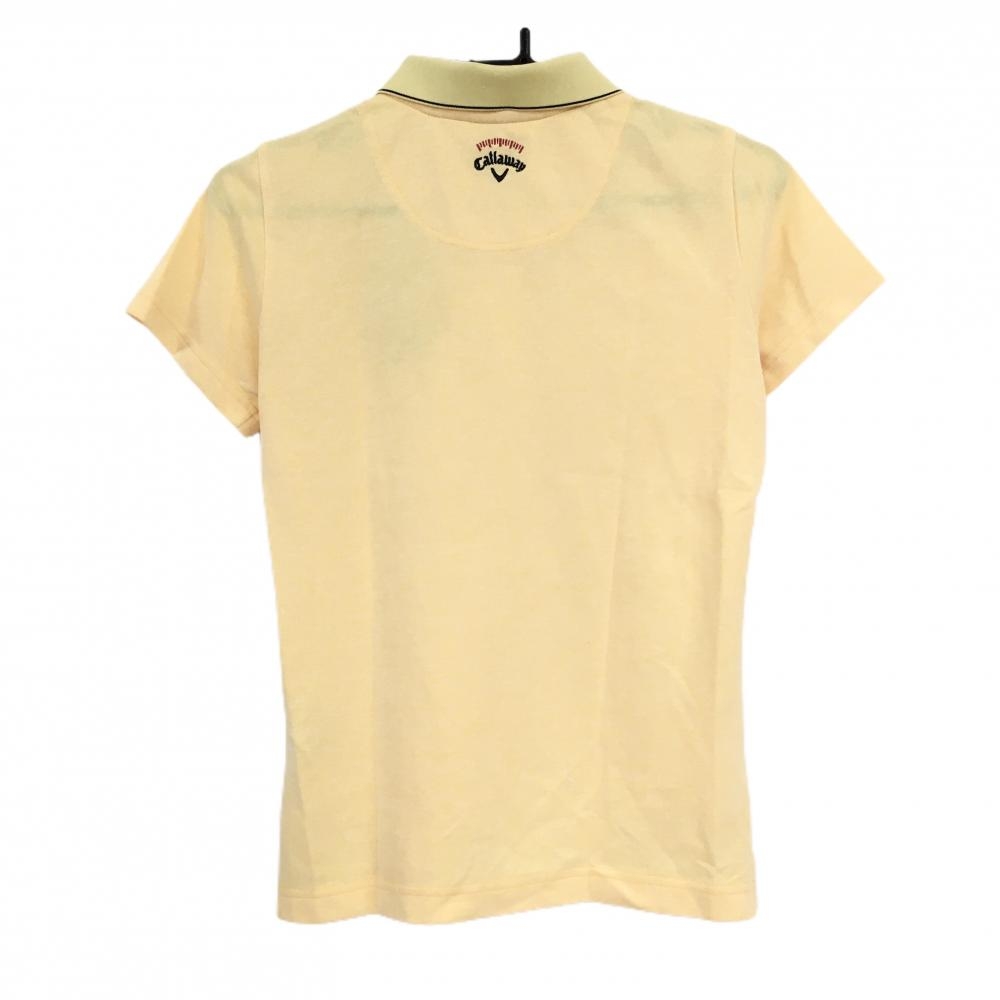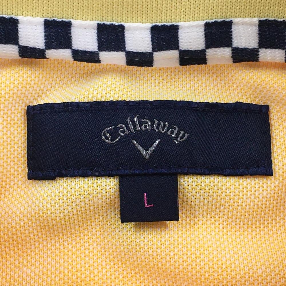 【美品】キャロウェイ 半袖ポロシャツ 杢イエロー系×ネイビー ロゴ刺しゅう レディース L ゴルフウェア Callaway