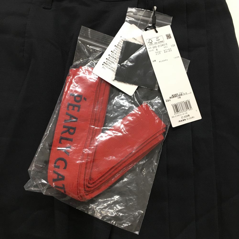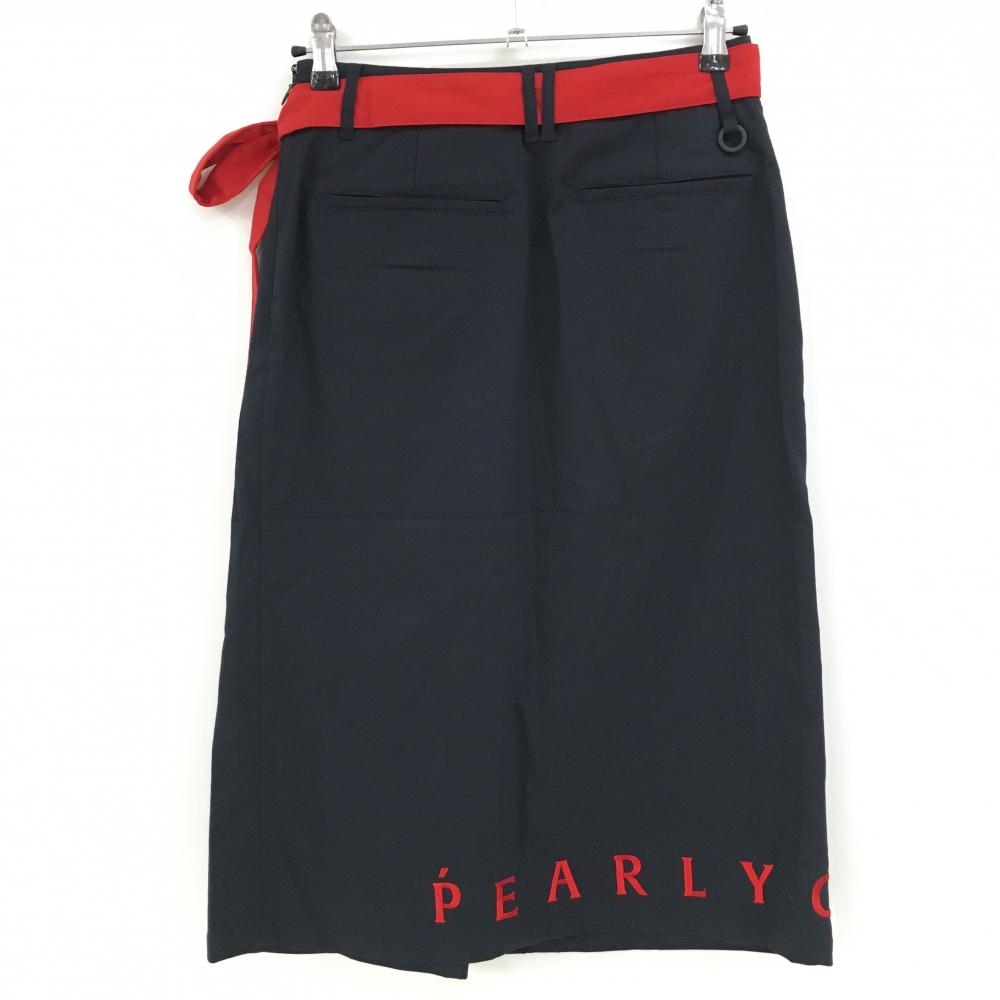 【新品】パーリーゲイツ スカート ネイビー×レッド 裾ロゴ刺しゅう 共布ベルト付 レディース 0(S) ゴルフウェア PEARLY GATES