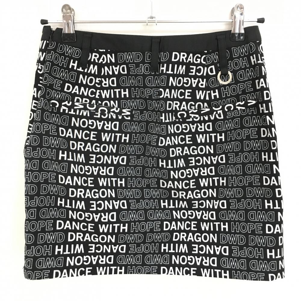 【美品】ダンスウィズドラゴン スカート 黒×白 ロゴ総柄 ストレッチ レディース 1(S) ゴルフウェア Dance With Dragon