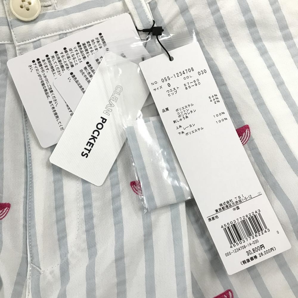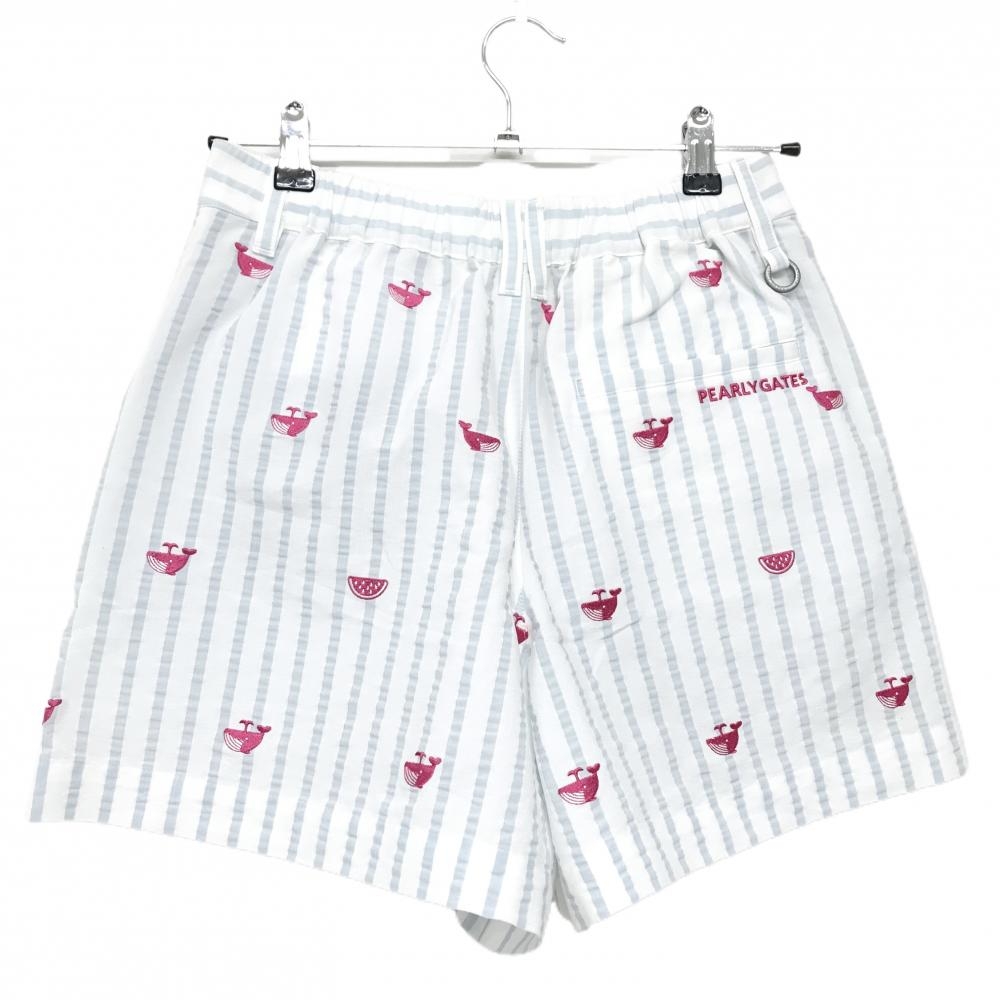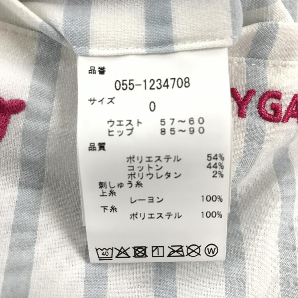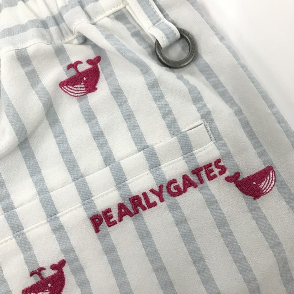 【新品】パーリーゲイツ キュロットスカート 白×ライトブルー系 クジラ柄 ストライプ レディース 0(S) ゴルフウェア PEARLY GATES