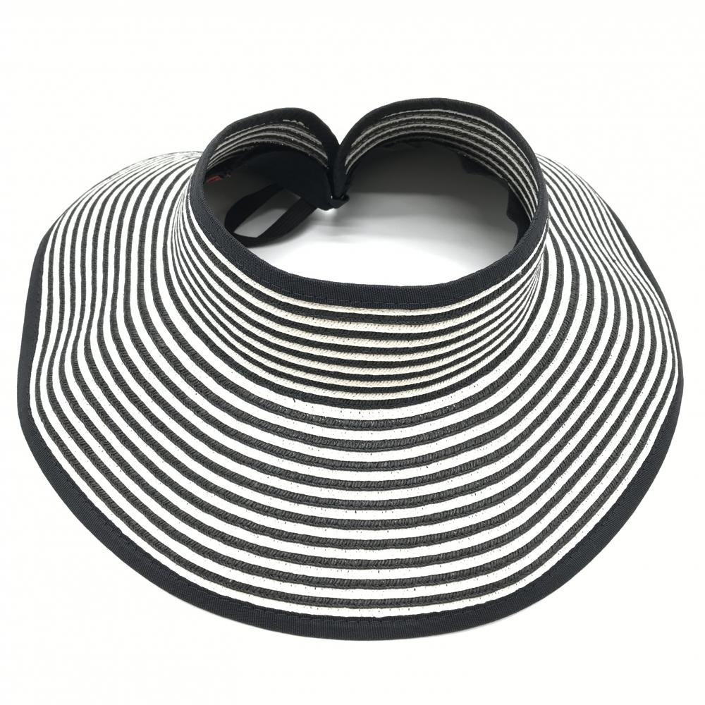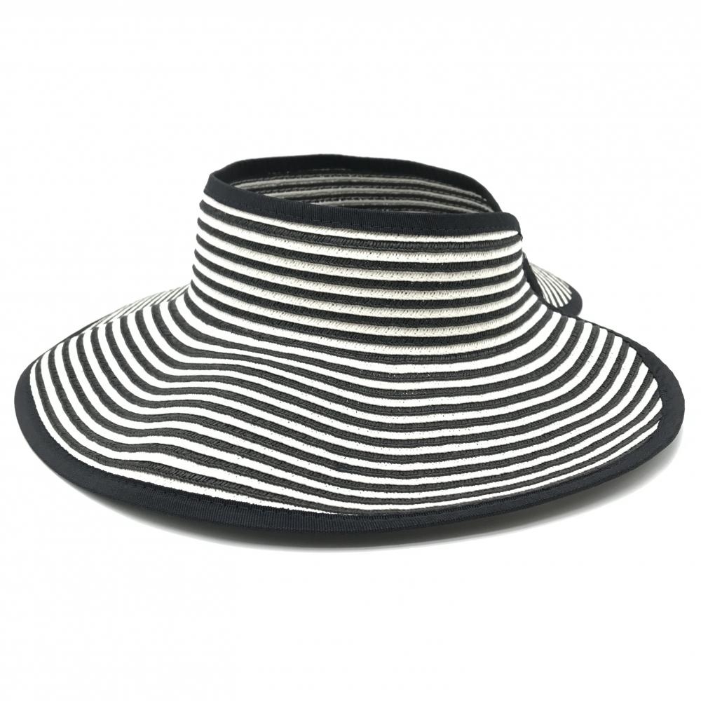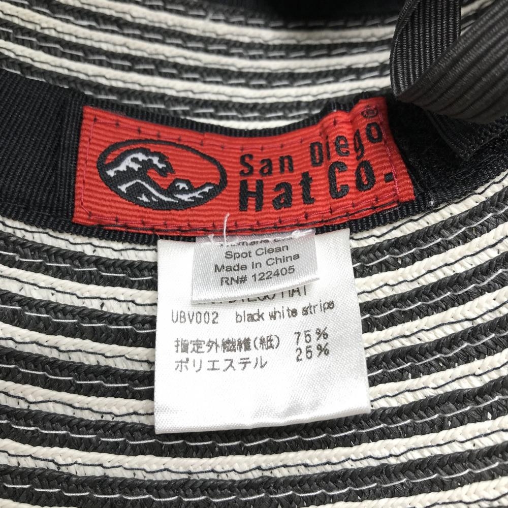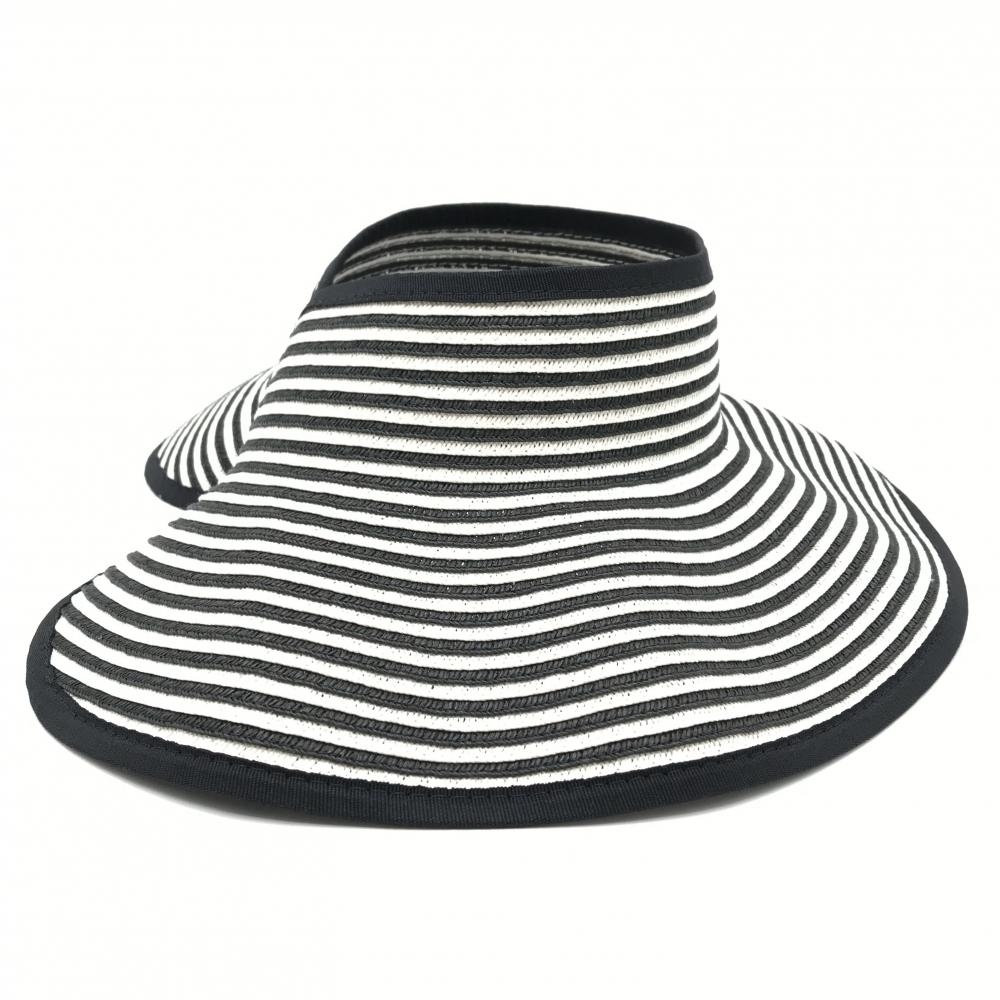 【超美品】サンディエゴハット サンバイザー 黒×白 ボーダー 折り畳み式 表記なし ゴルフウェア san diego hat co.