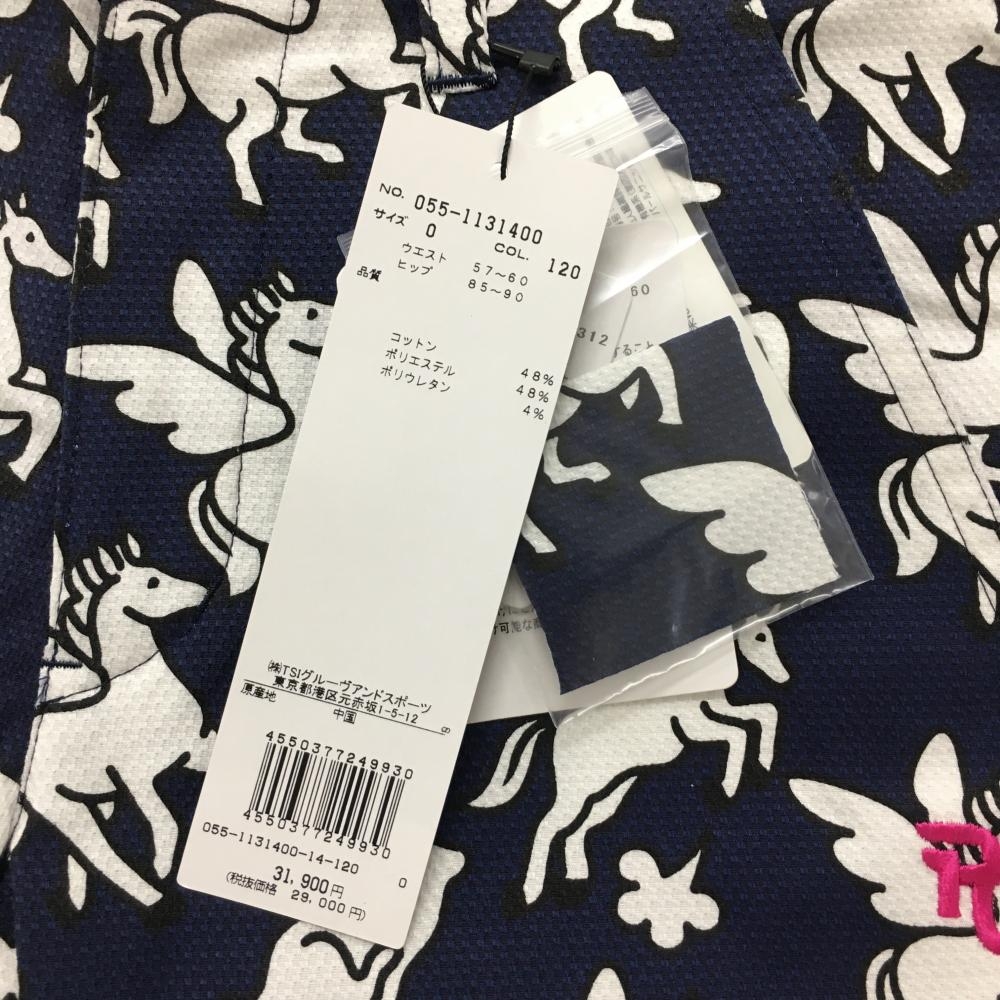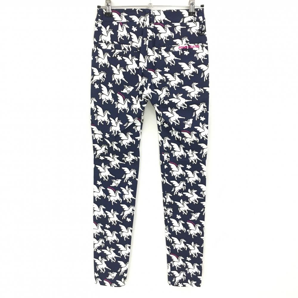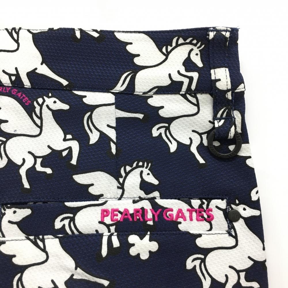 【新品】パーリーゲイツ パンツ ネイビー×白 ユニコーン柄 ストレッチ レディース 0(S) ゴルフウェア PEARLY GATES