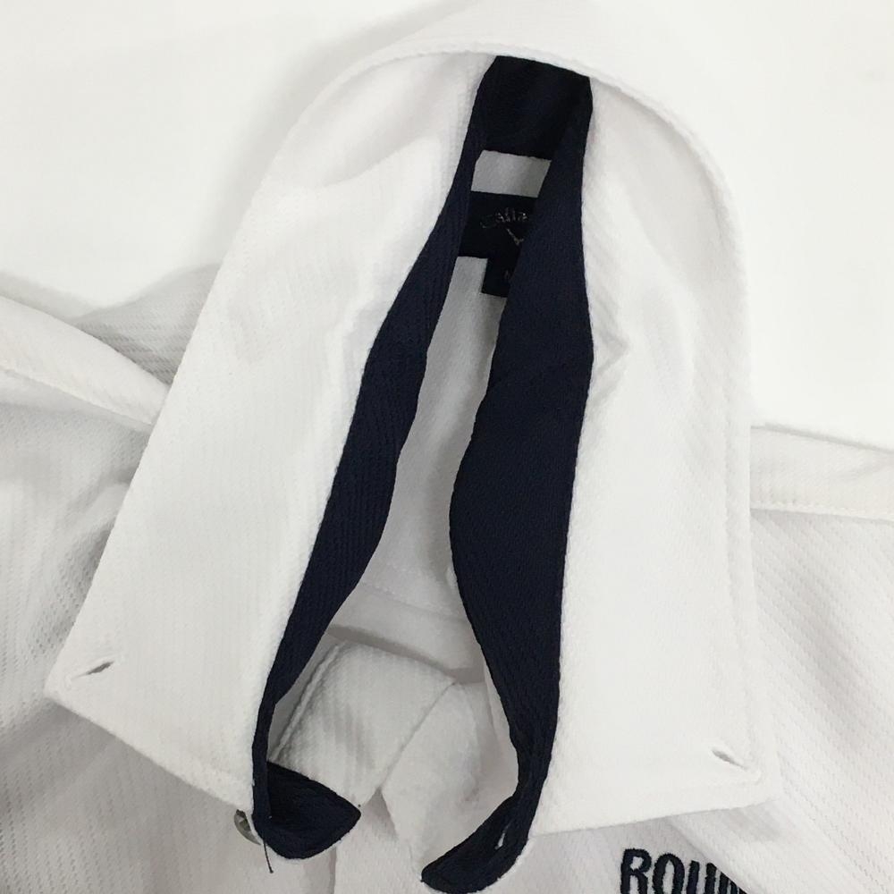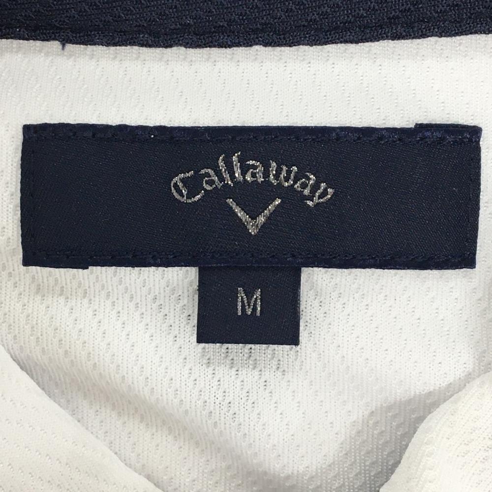 【美品】キャロウェイ 半袖ポロシャツ 白×ネイビー 斜めストライプ織生地 メンズ M ゴルフウェア Callaway