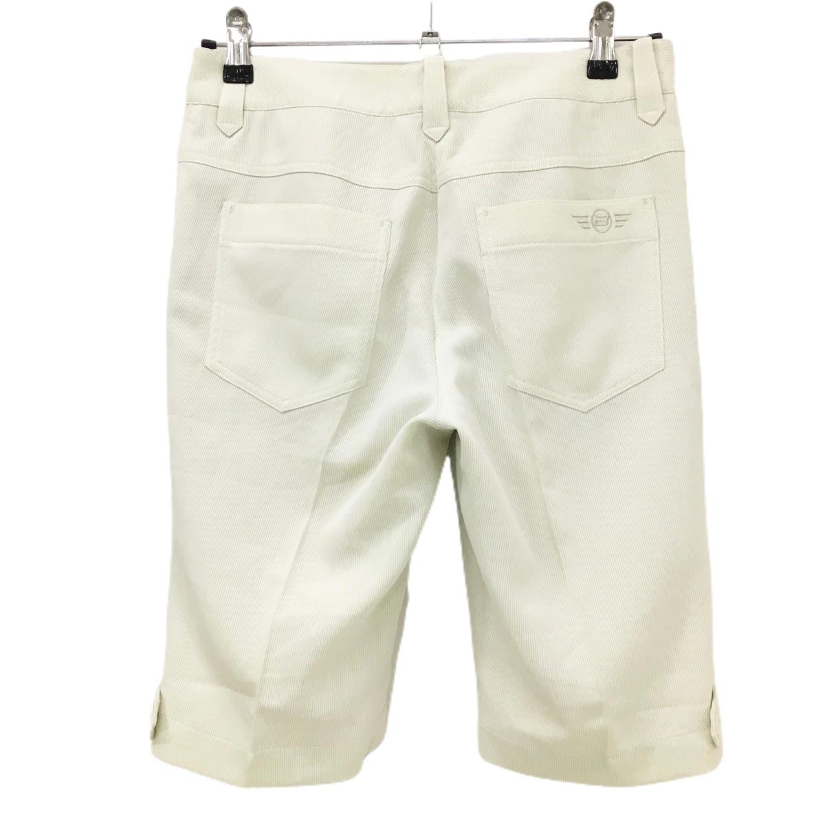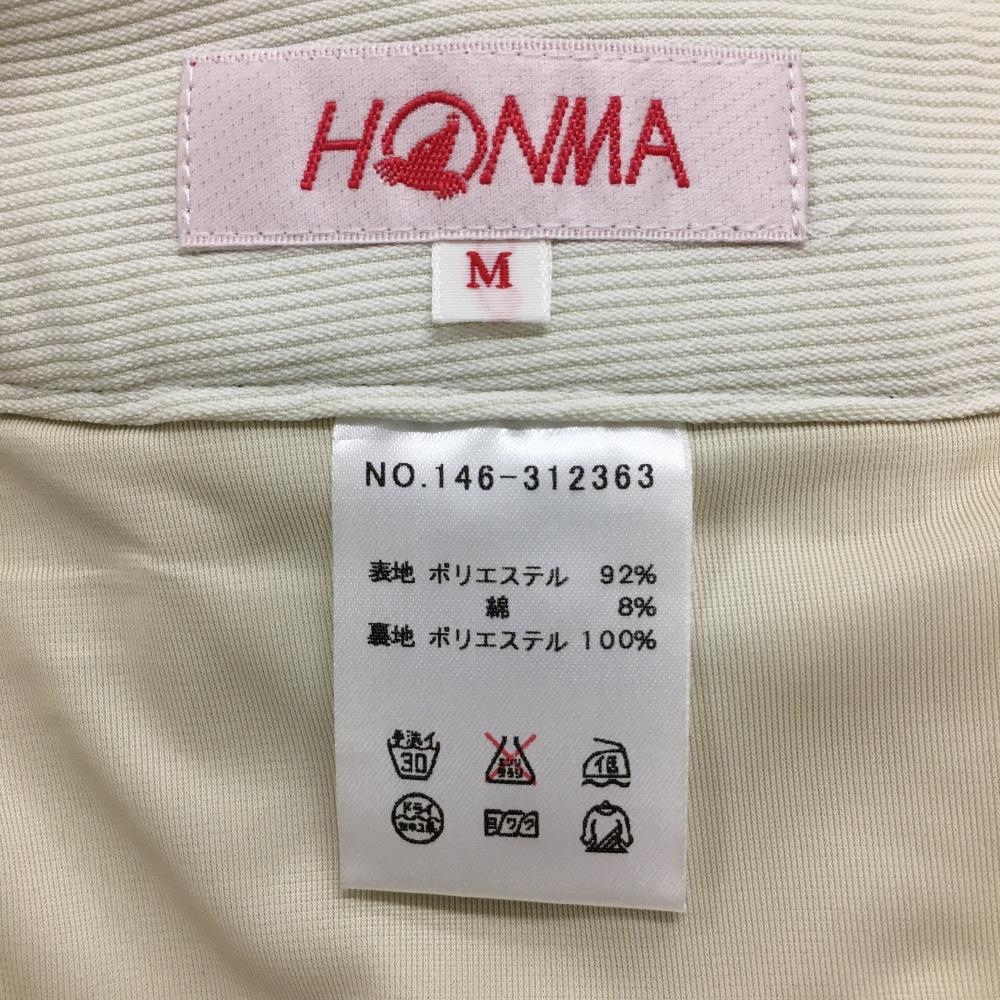 【超美品】ホンマ ハーフパンツ アイボリー ストライプ織生地 後ろ刺しゅう レディース M ゴルフウェア HONMA