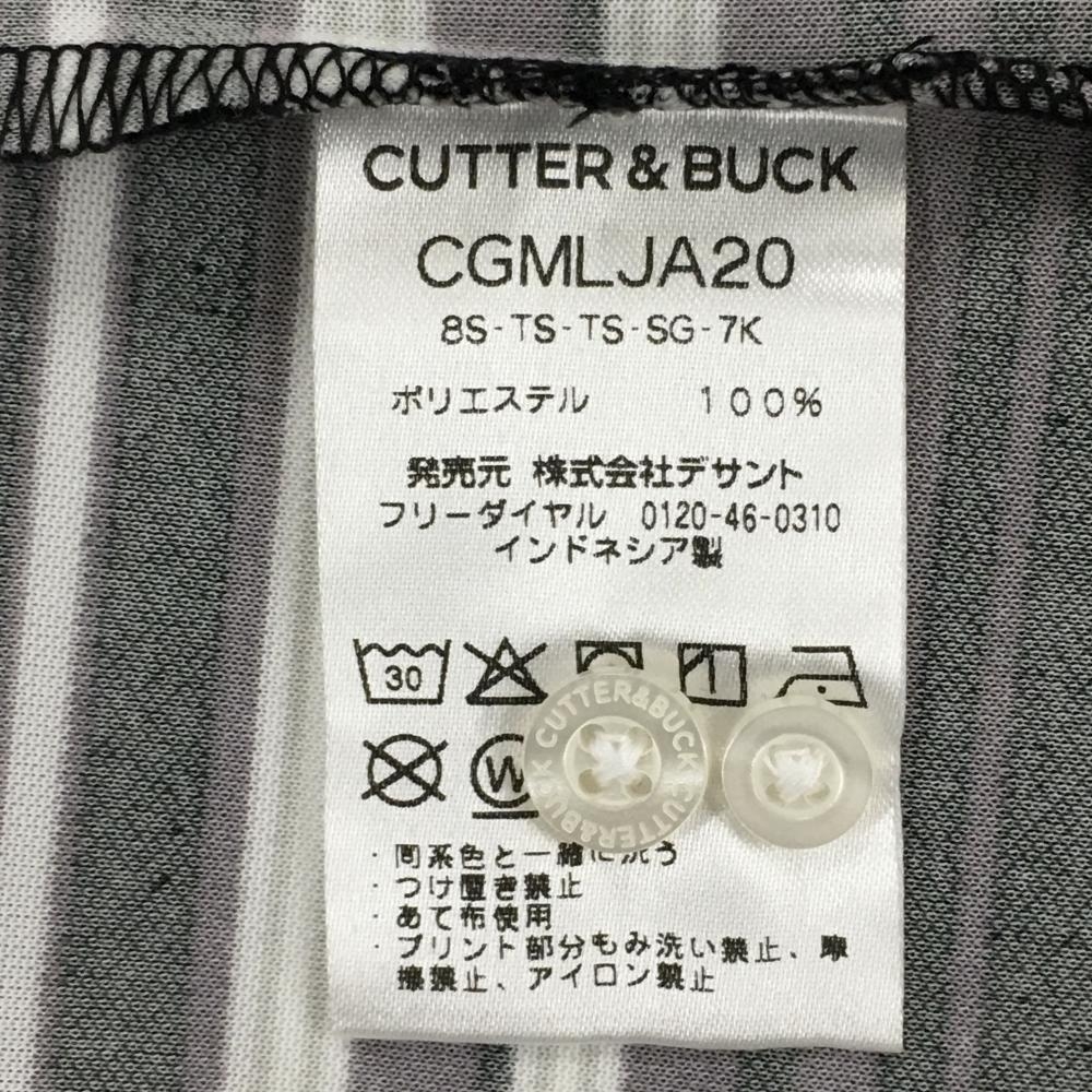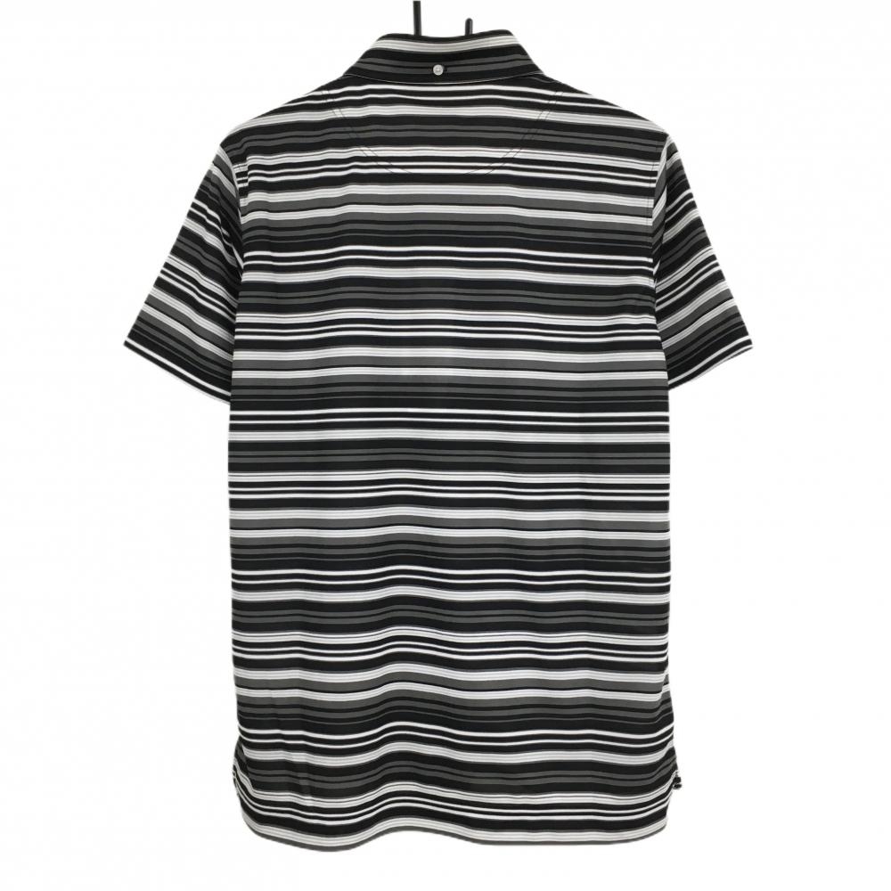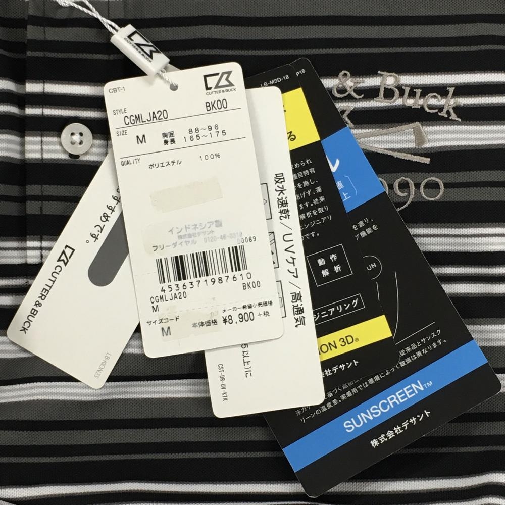 【新品】カッターアンドバック 半袖ポロシャツ 黒×グレー×白 ボーダー ボタンダウン 吸水速乾 メンズ M ゴルフウェア CUTTER&BUCK