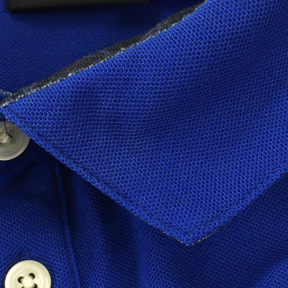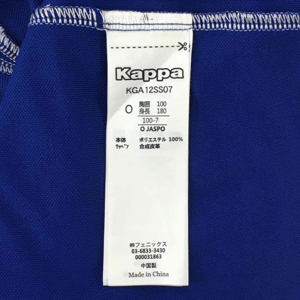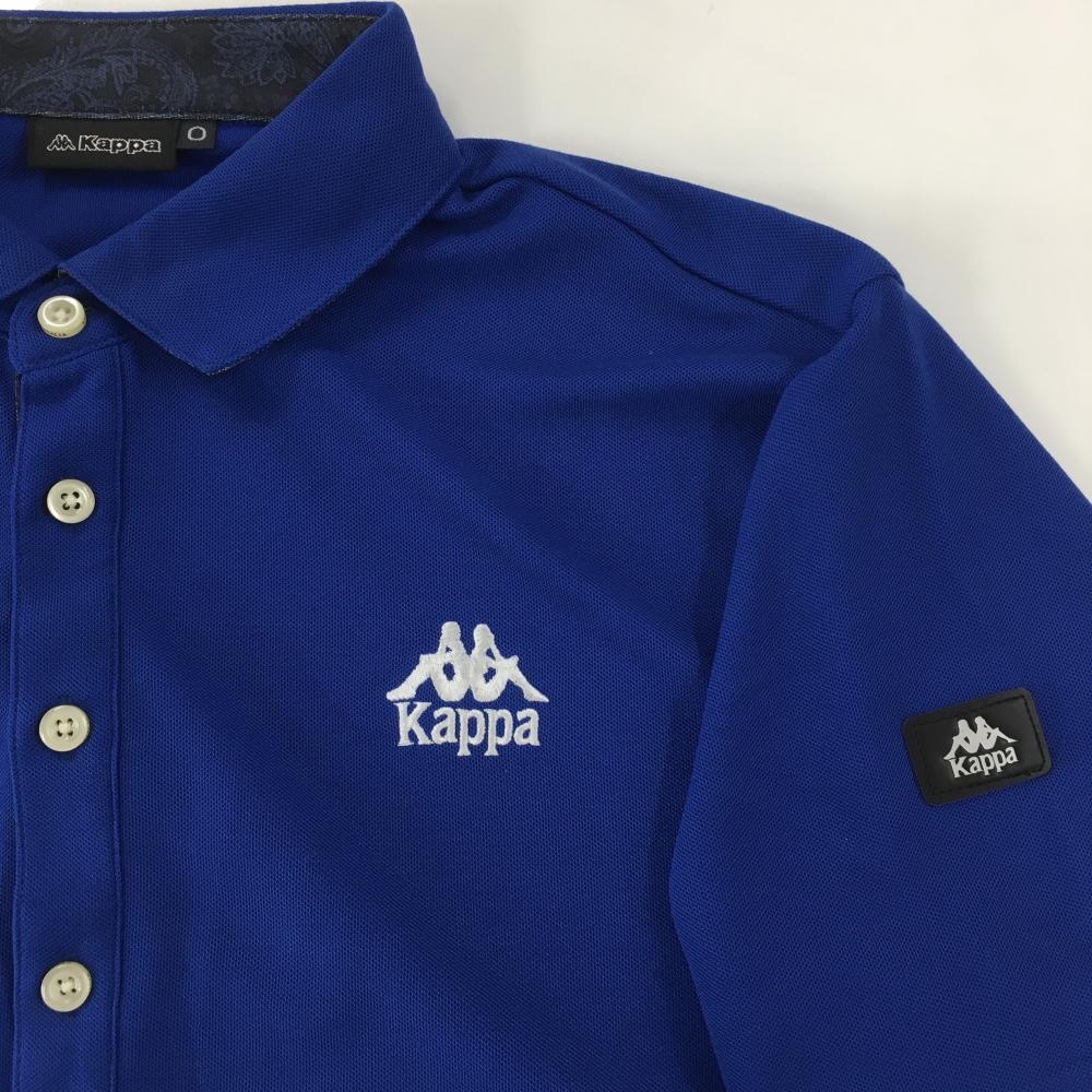 【美品】カッパ 半袖ポロシャツ ブルー×白 ロゴ白 袖ワッペン メンズ O(XL) ゴルフウェア Kappa
