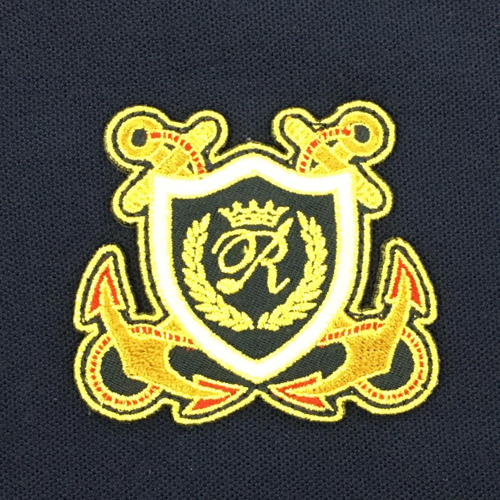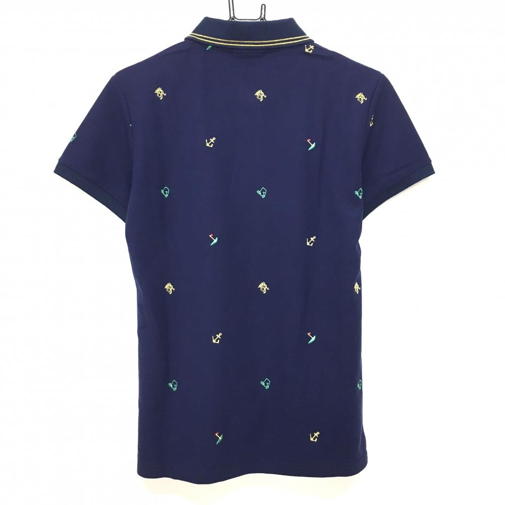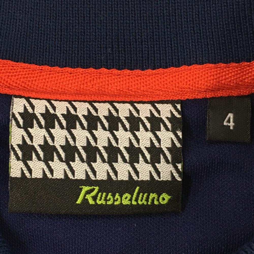 【超美品】ラッセルノ 半袖ポロシャツ ネイビー×グリーン×イエロー 総柄 イカリ カート メンズ 4(M) ゴルフウェア RUSSELUNO