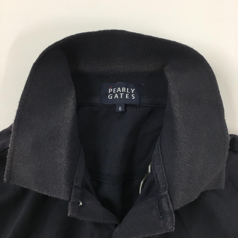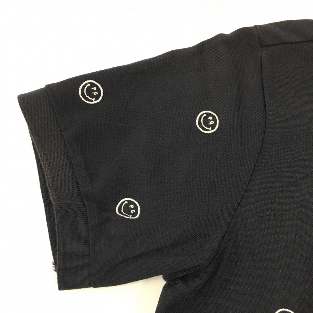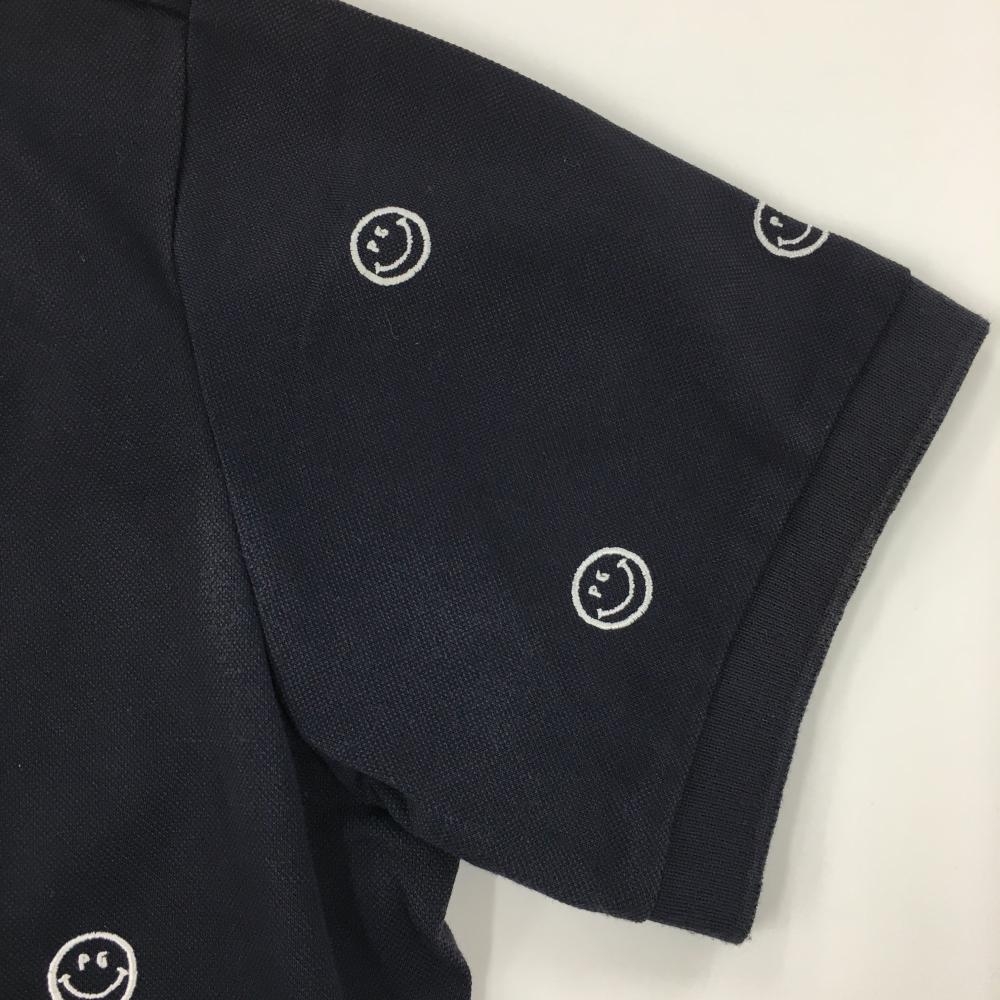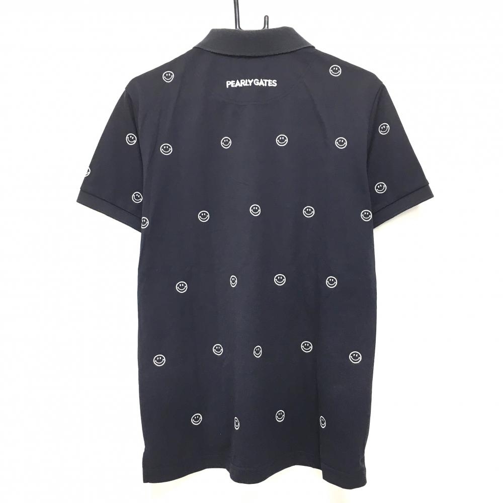 パーリーゲイツ 半袖ポロシャツ ダークネイビー×白 ニコちゃん総柄刺しゅう スマイル メンズ 6(XL) ゴルフウェア PEARLY GATES