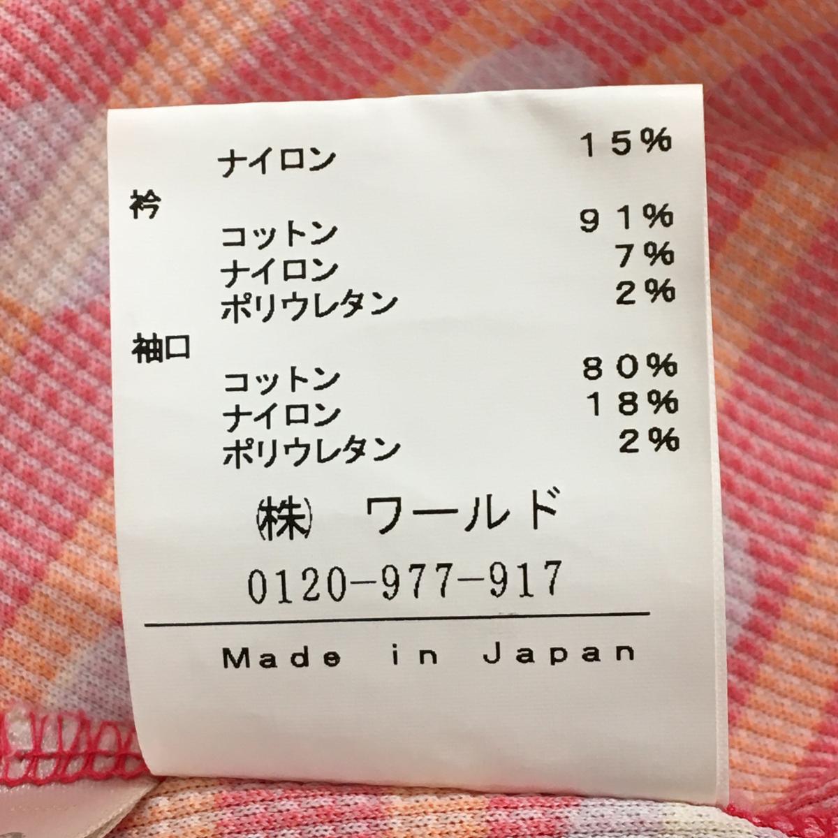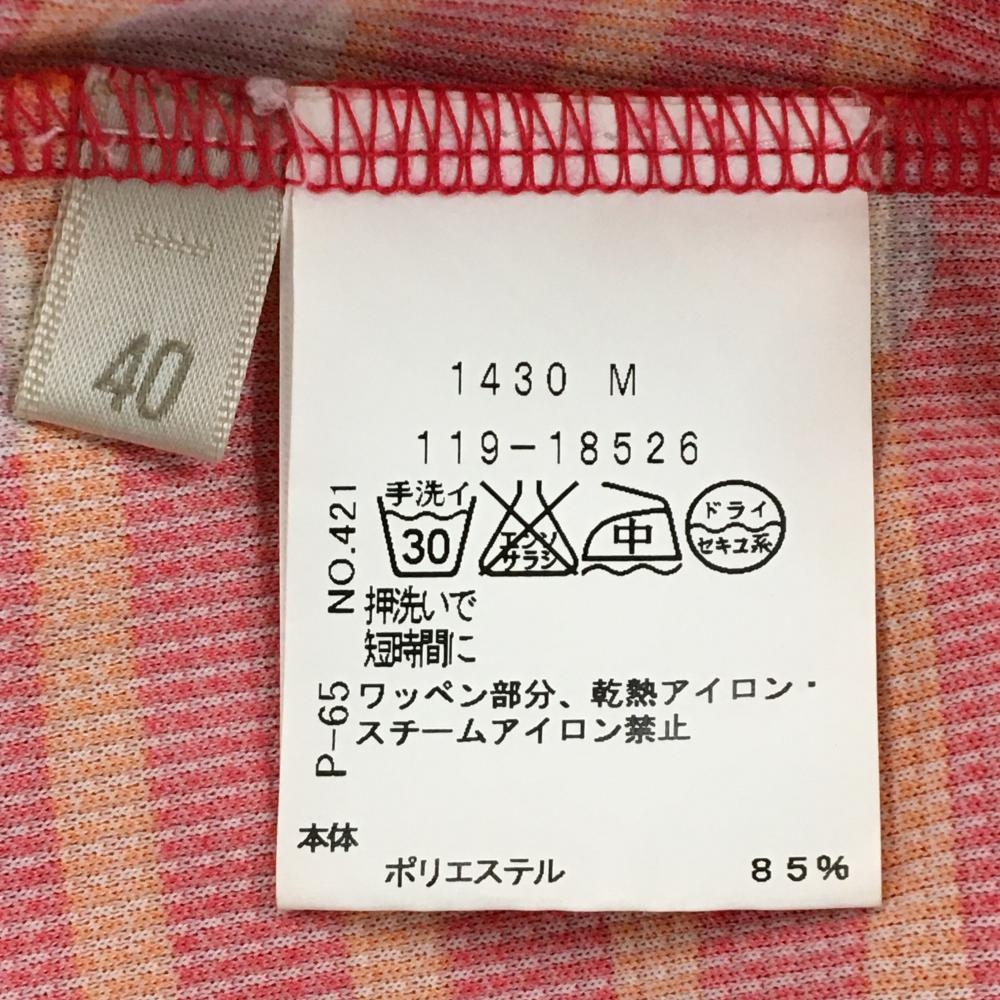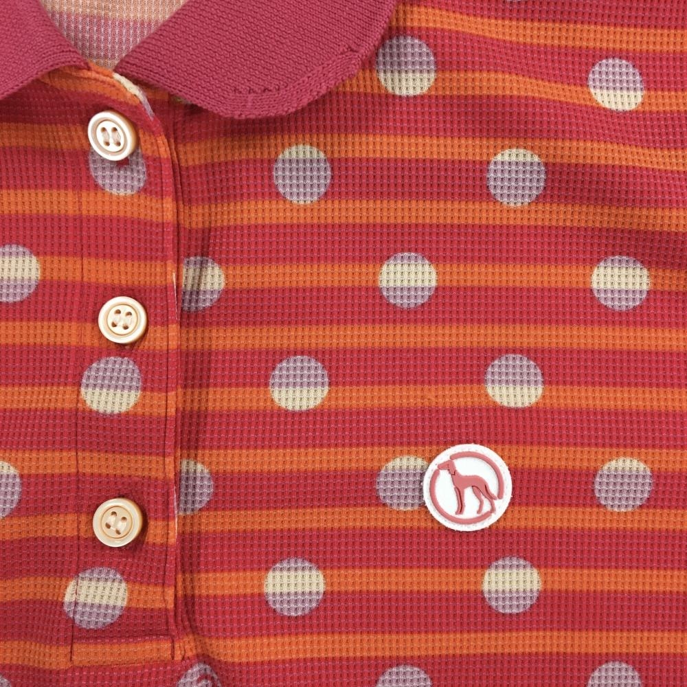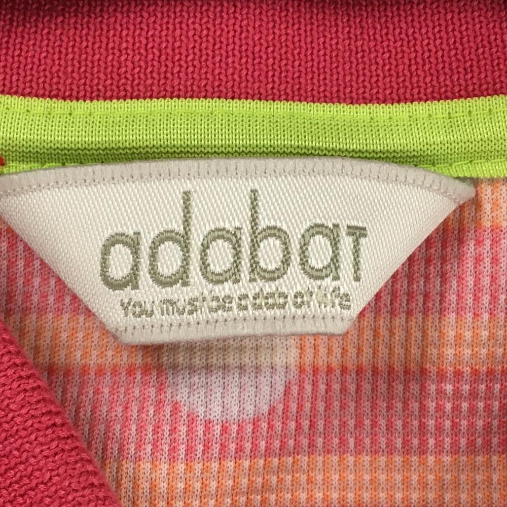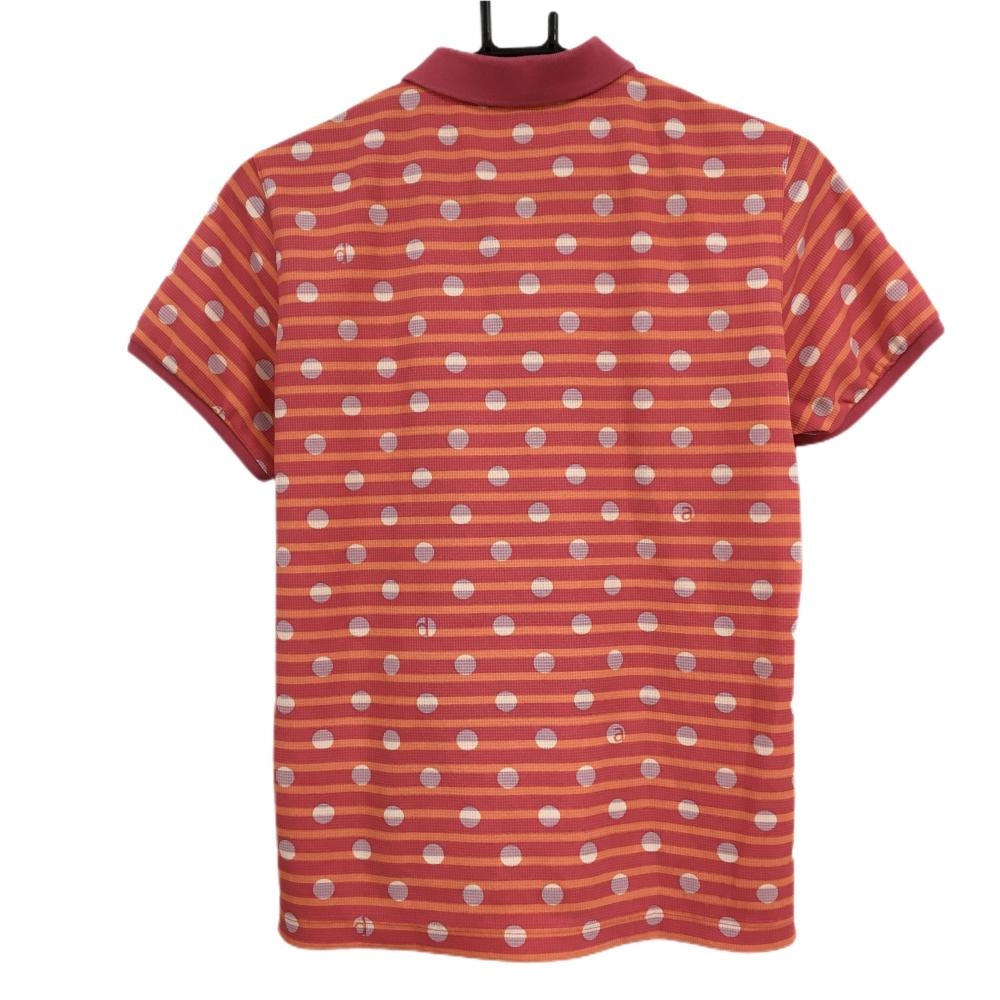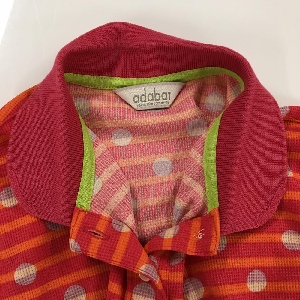 アダバット 半袖ポロシャツ レッド×オレンジ ボーダー ドット柄 ロゴワッペン レディース 40(L) ゴルフウェア adabat