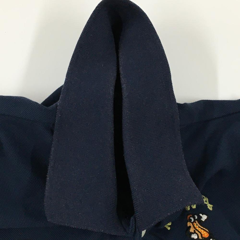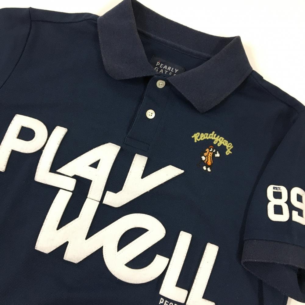 パーリーゲイツ 半袖ポロシャツ ネイビー×白 フェルトワッペン メンズ 3(S) ゴルフウェア PEARLY GATES