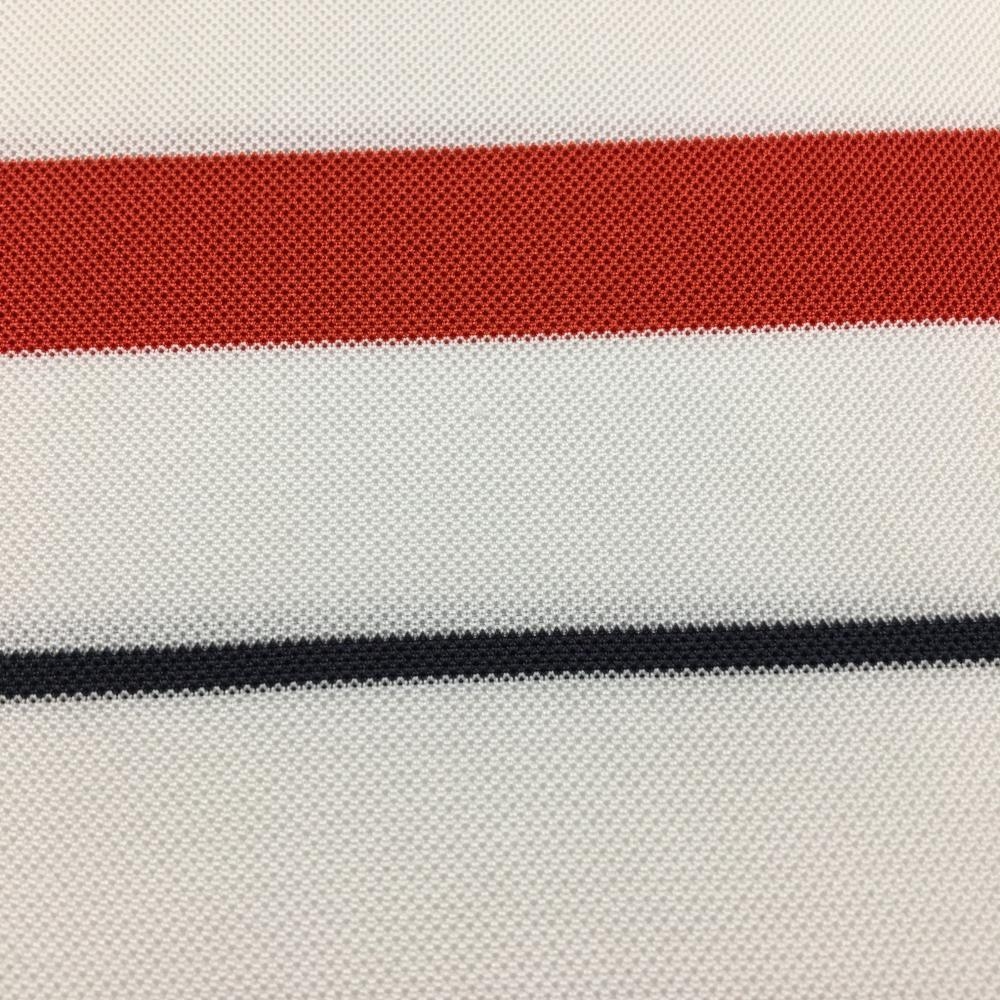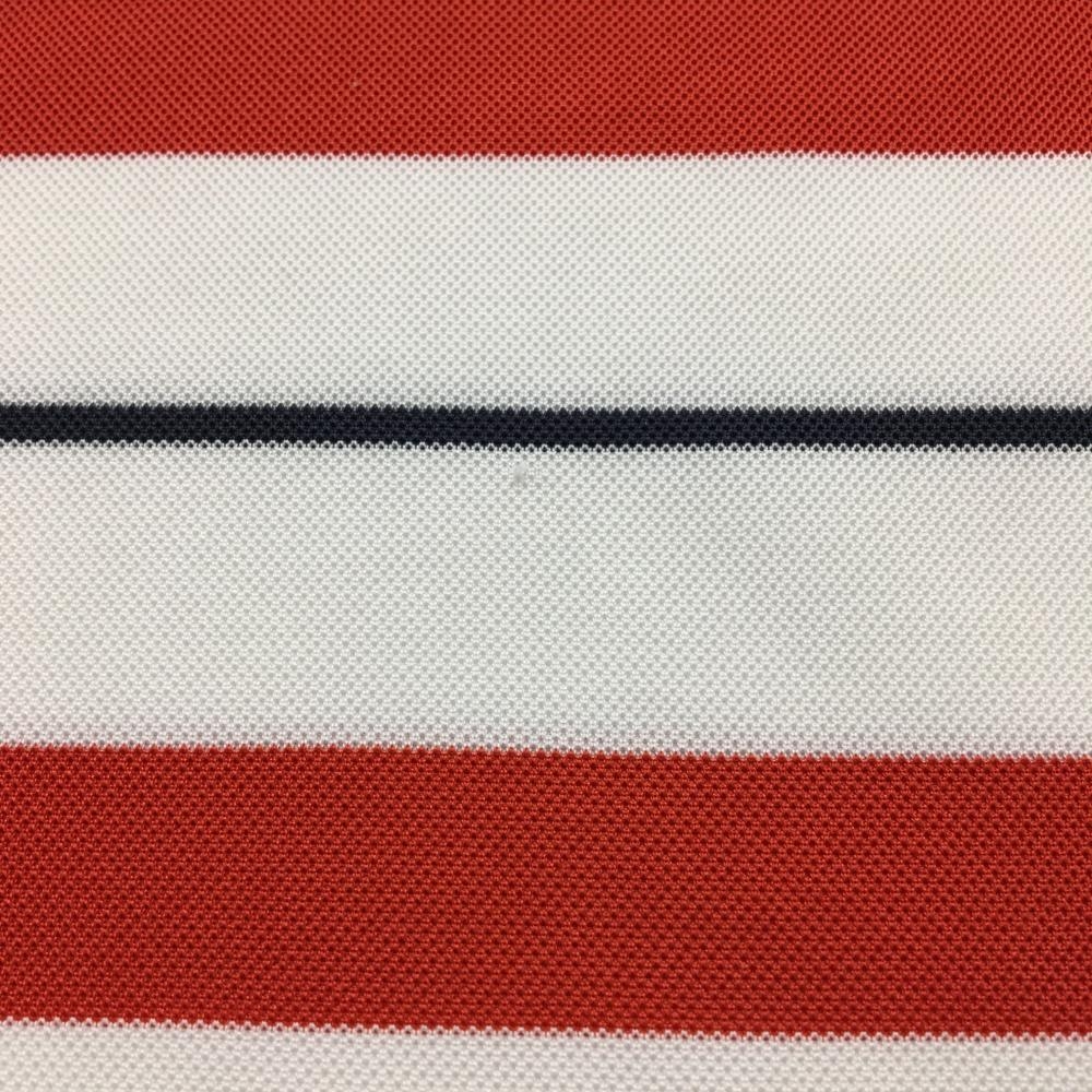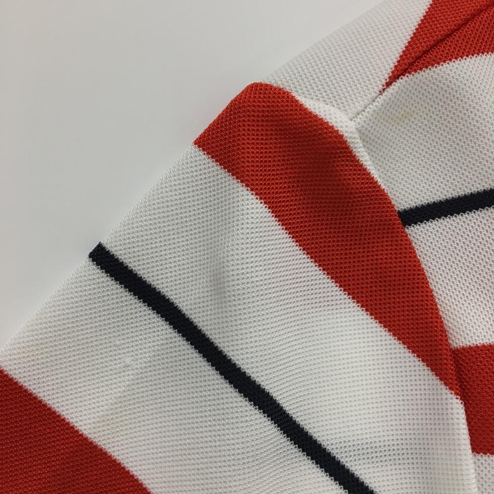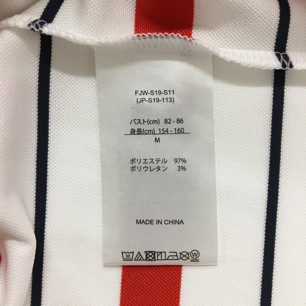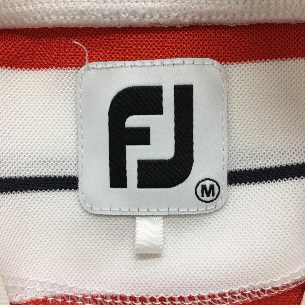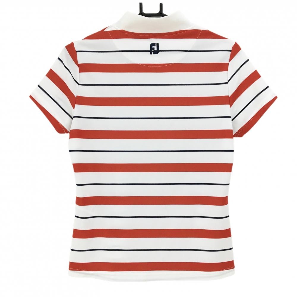 【美品】フットジョイ 半袖ハイネックシャツ 白×レッド ボーダー ロゴ刺しゅう レディース M ゴルフウェア FootJoy