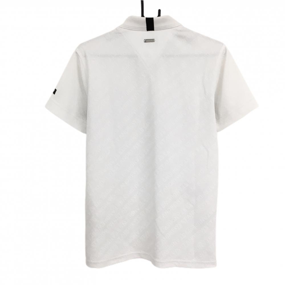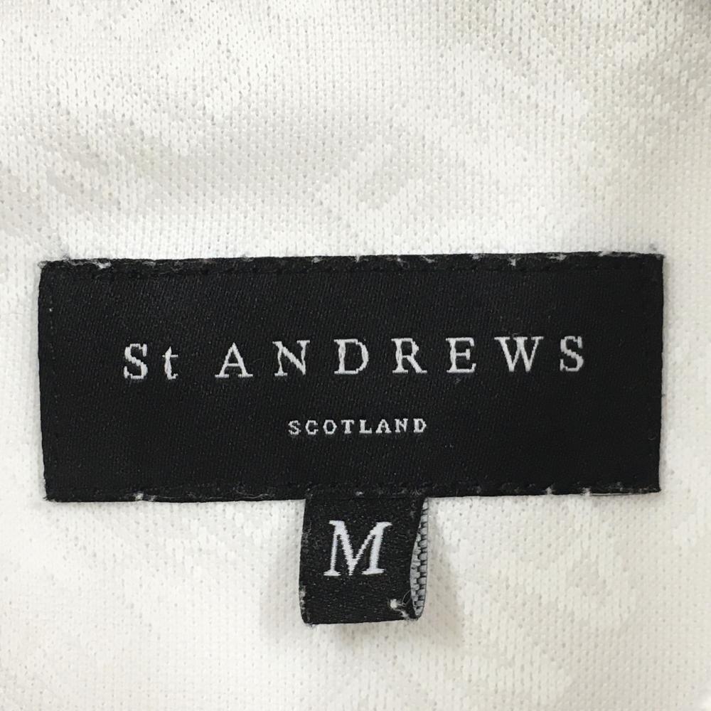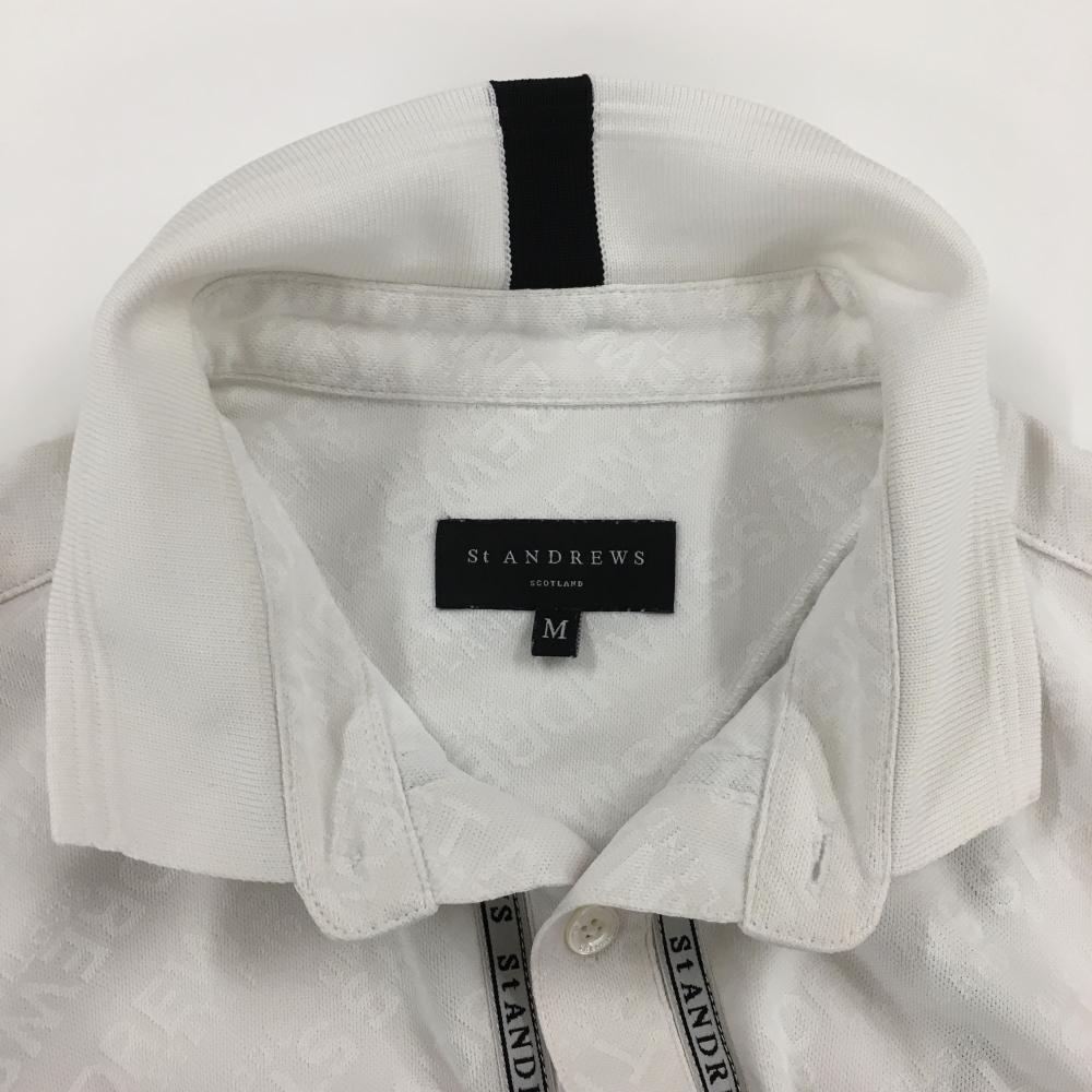 セントアンドリュース 半袖ポロシャツ 白 英字ロゴ総柄地模様 前立て横ロゴライン メンズ M ゴルフウェア 2023年モデル St ANDREWS