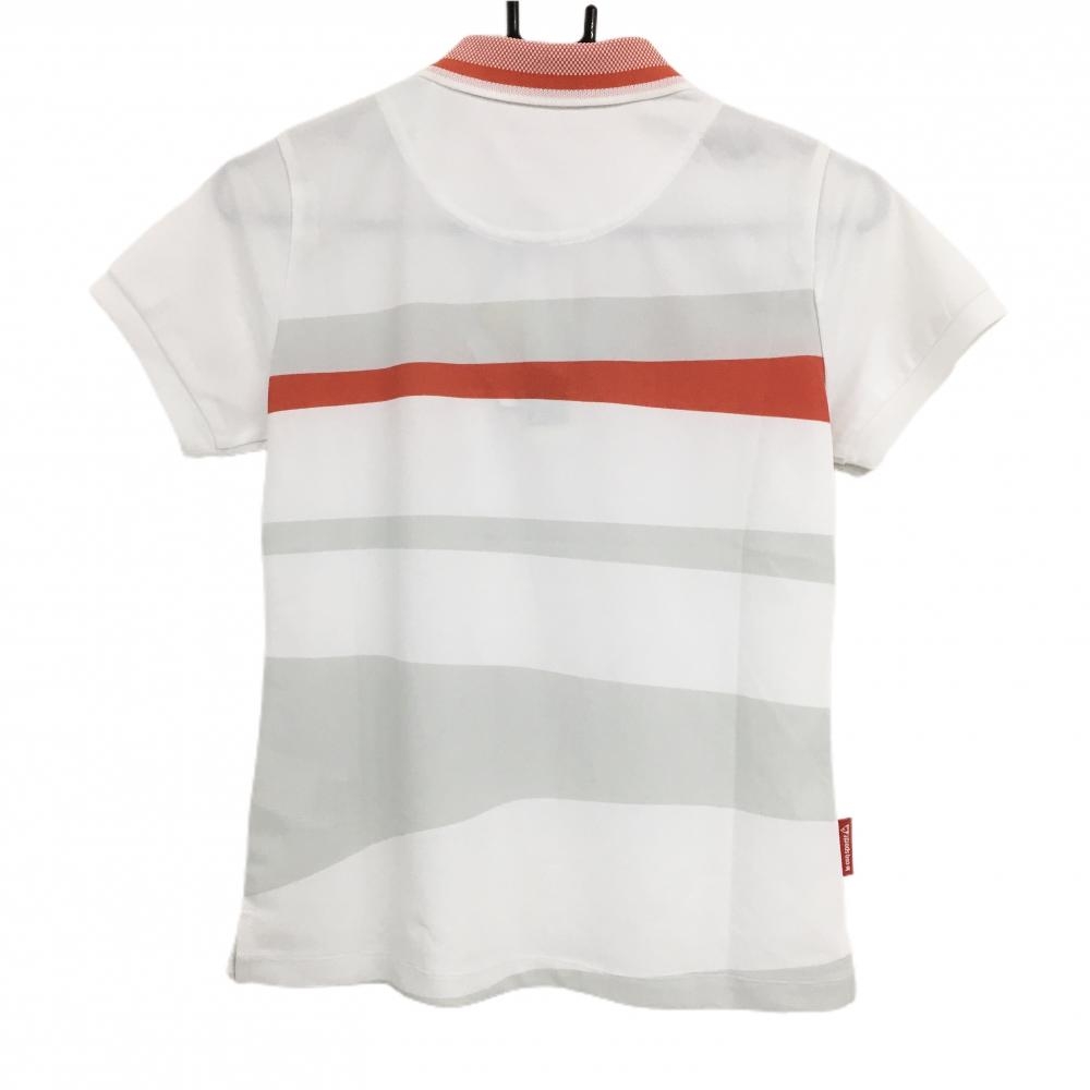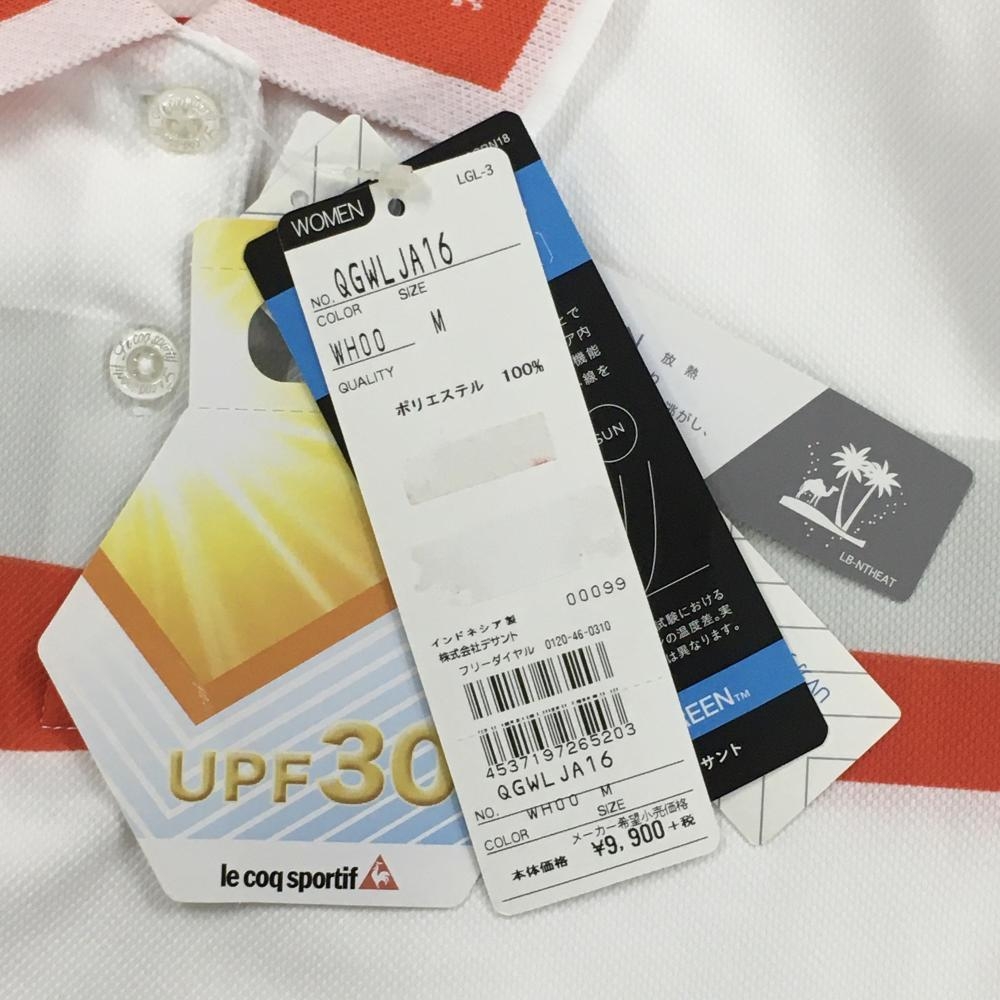 【新品】ルコックゴルフ 半袖ポロシャツ 白×ライトグレー×レッド 身頃ボーダー風 UPF30 レディース M ゴルフウェア le coq sportif