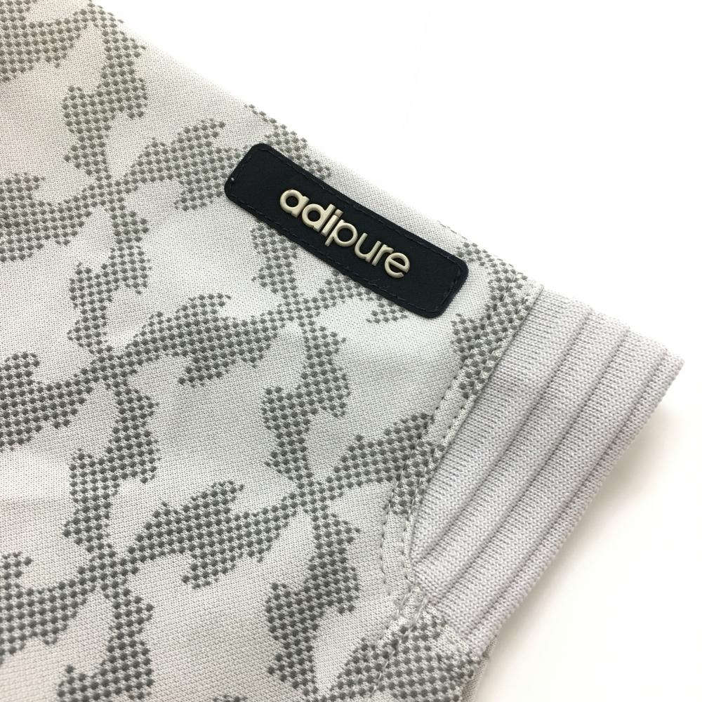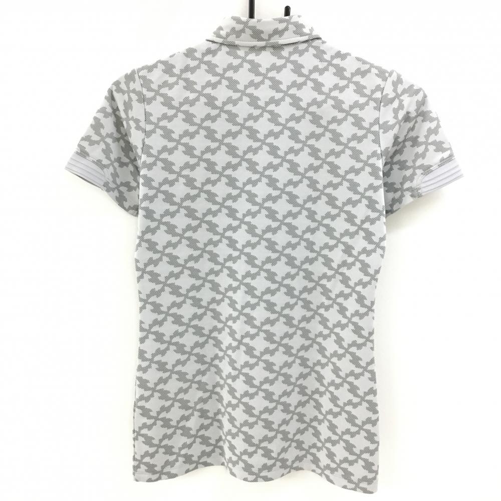 【美品】アディダス 半袖ポロシャツ ライトグレー×グレー 総柄 ボタンダウン レディース S/P ゴルフウェア adidas