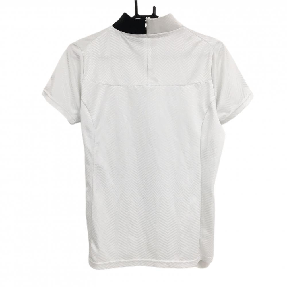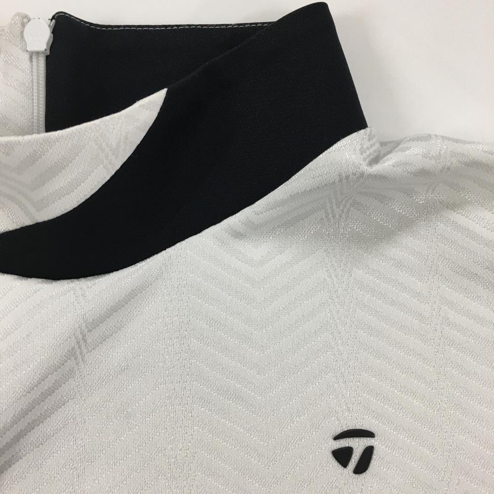 【美品】テーラーメイド 半袖ハイネックシャツ 白×黒 ネック後ろジップ 総柄 レディース O ゴルフウェア TaylorMade