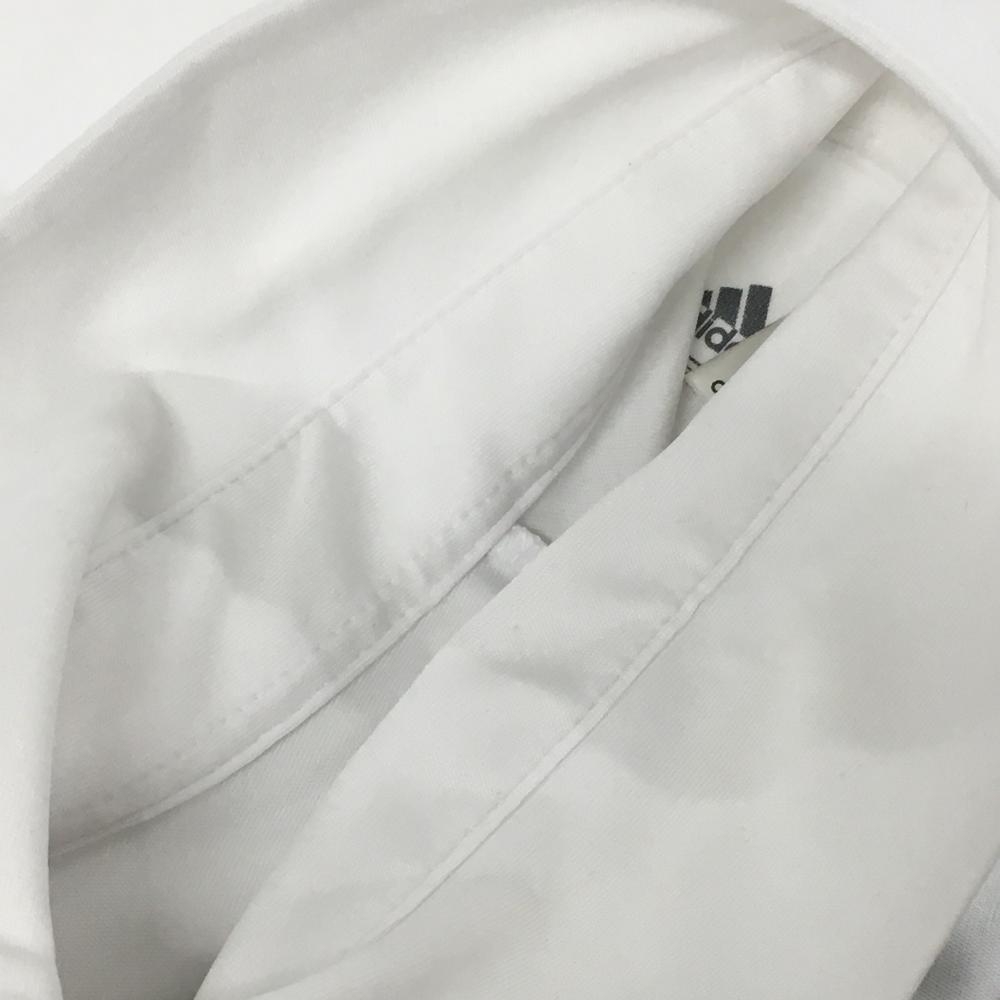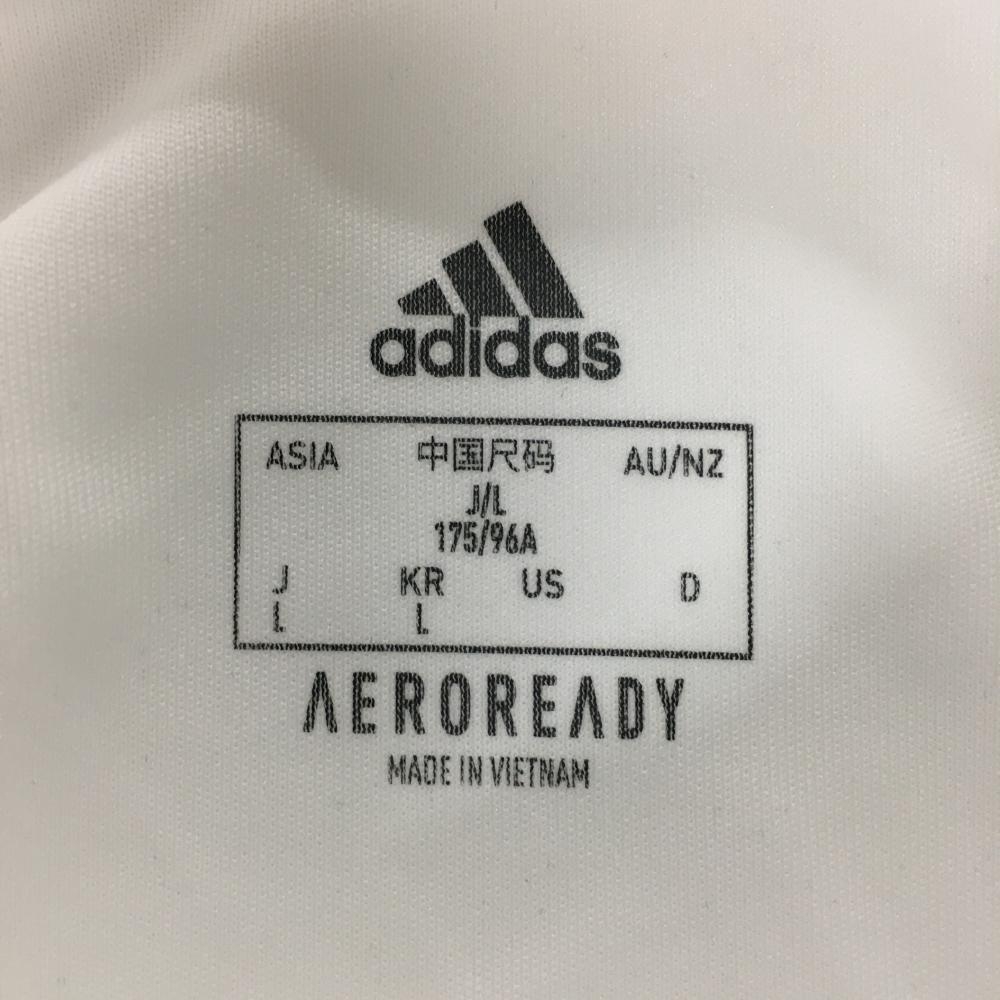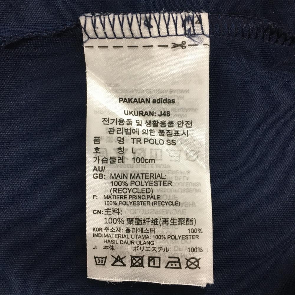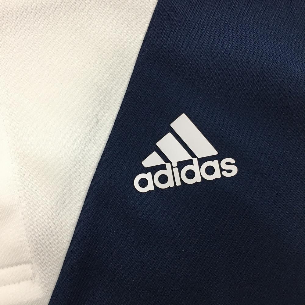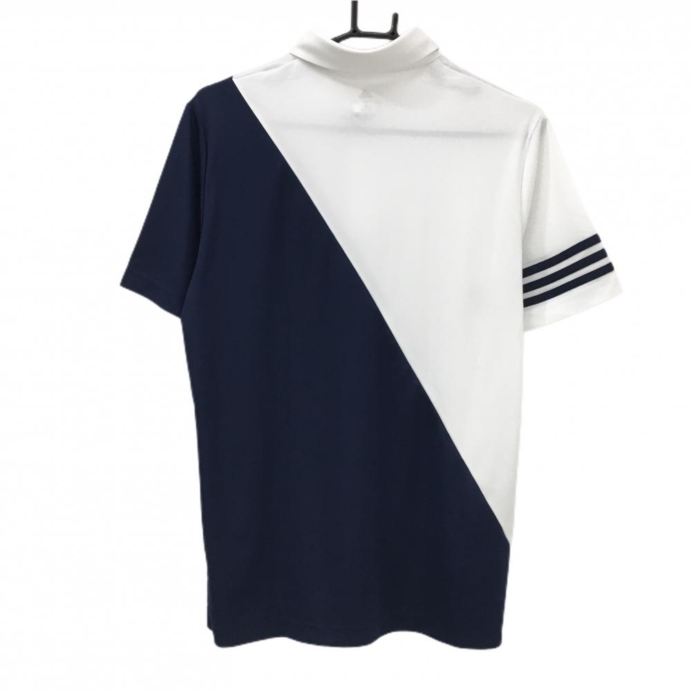 【美品】アディダス 半袖ポロシャツ 白×ネイビー 袖3ライン 胸元ロゴ メンズ L ゴルフウェア adidas
