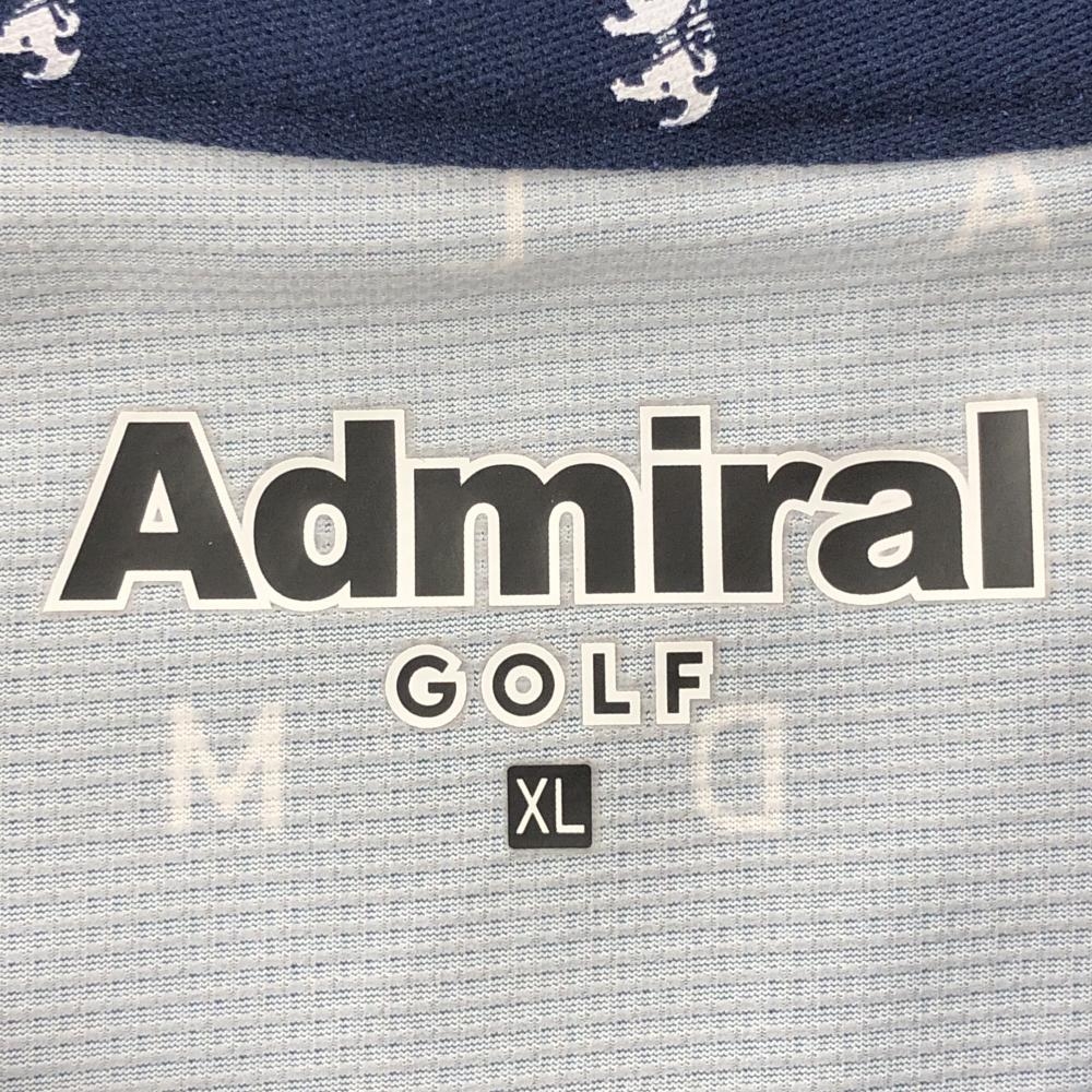 【超美品】アドミラル 半袖ポロシャツ ネイビー×白 ロゴ総柄 メンズ XL ゴルフウェア 2023年モデル Admiral
