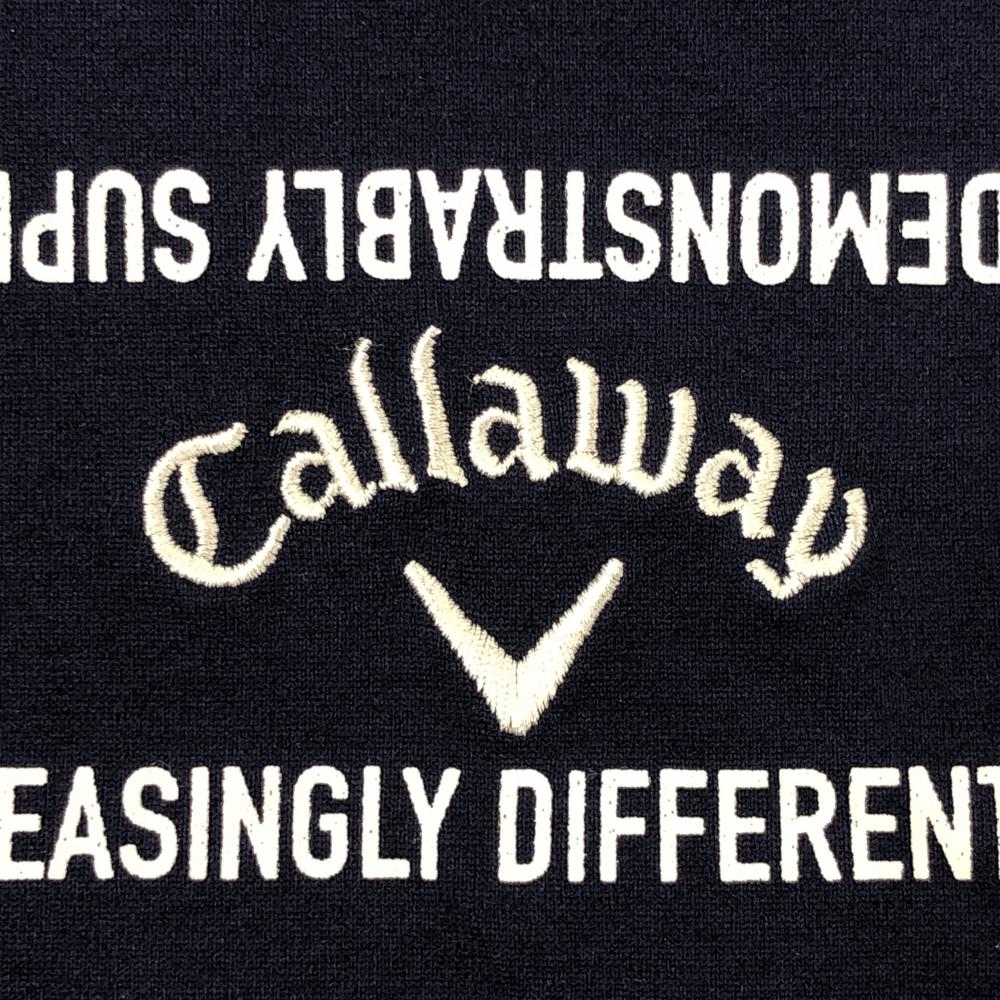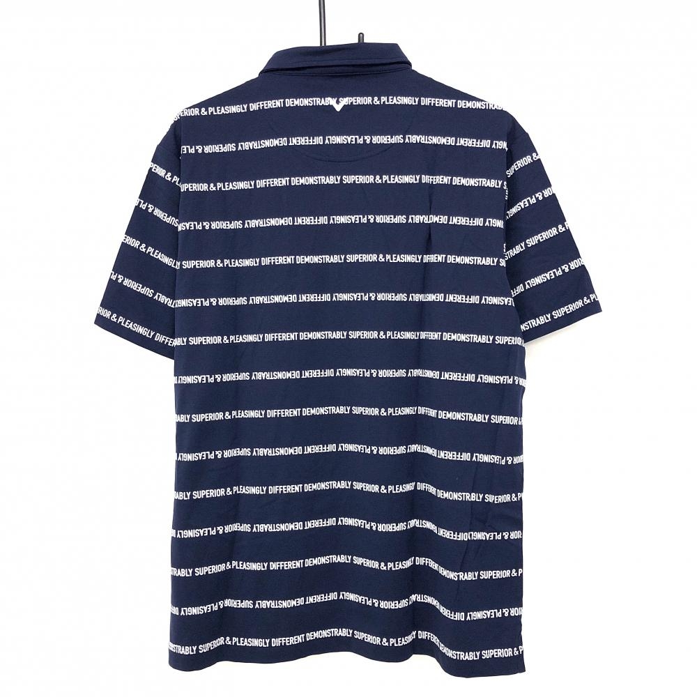 【超美品】キャロウェイ 半袖ポロシャツ ネイビー×白 ロゴボーダー メンズ 3L ゴルフウェア 大きいサイズ Callaway