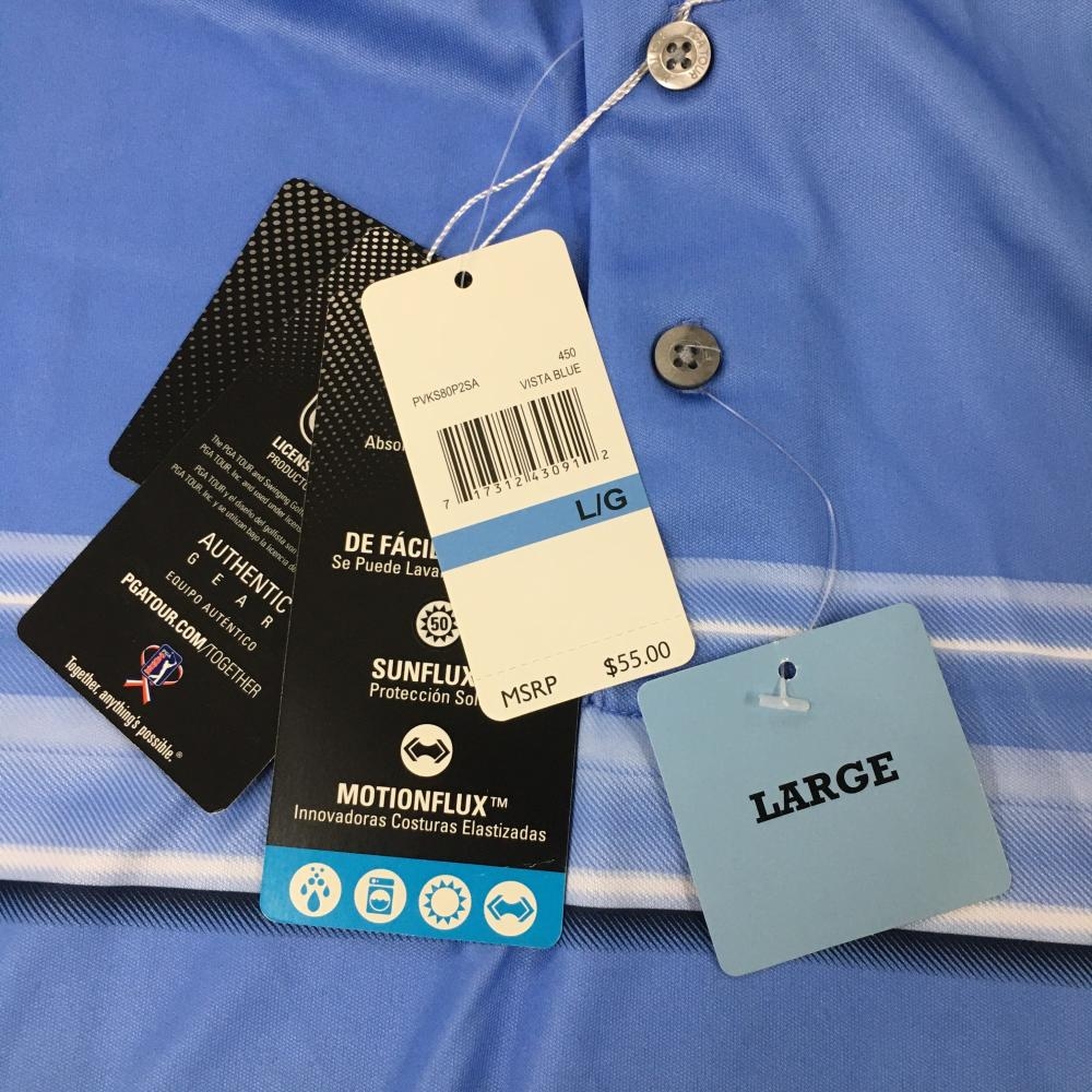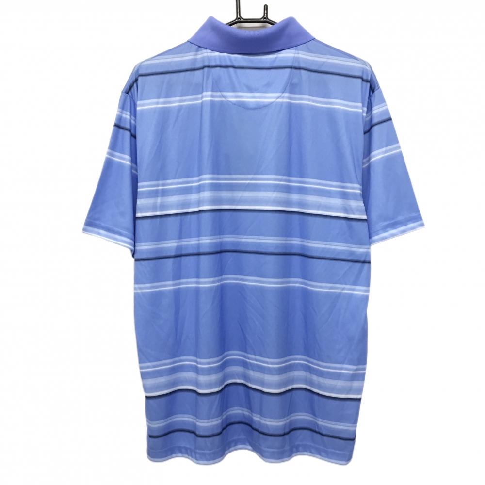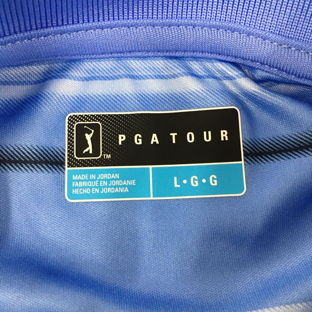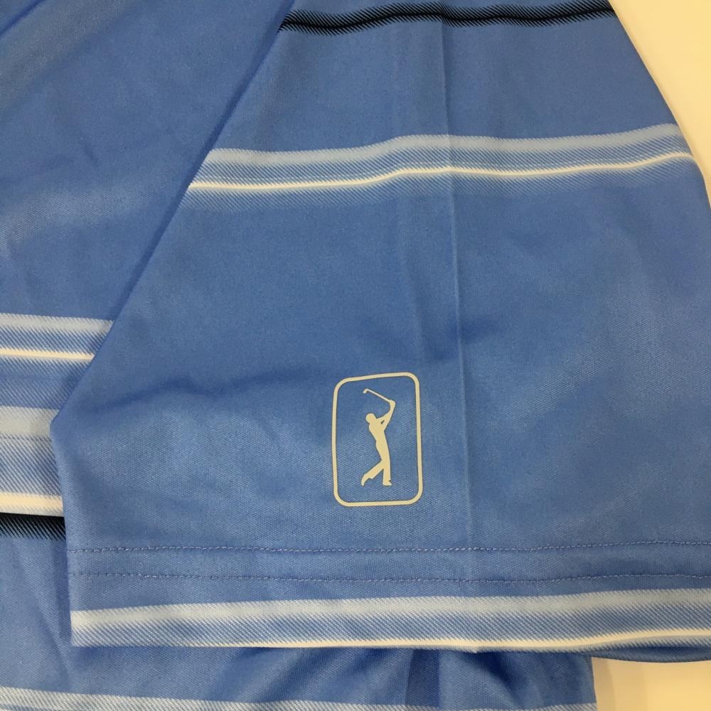 【新品】ピージーエーツアー 半袖ポロシャツ ライトブルー×白 ボーダー風 メンズ L・G・G ゴルフウェア PGATOUR