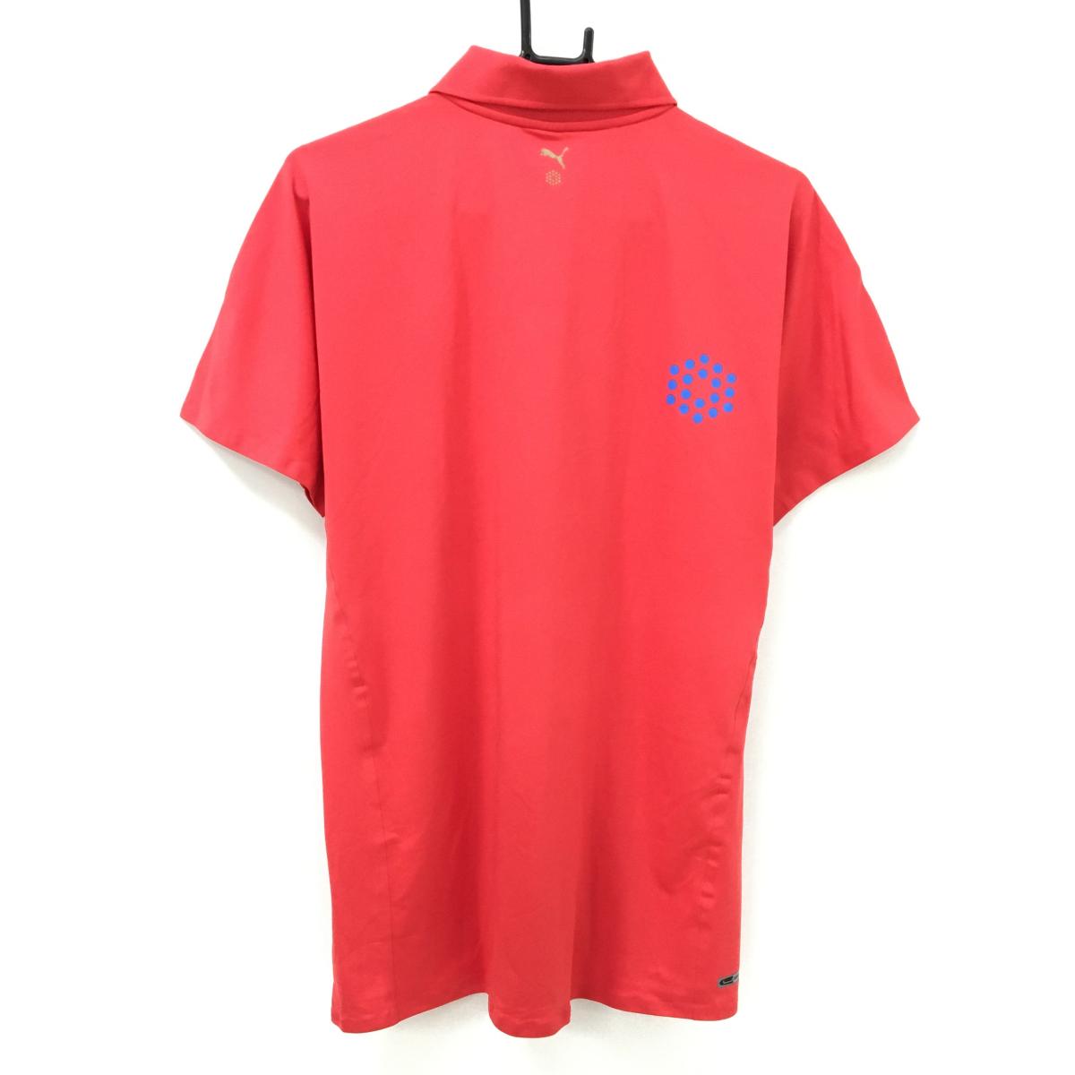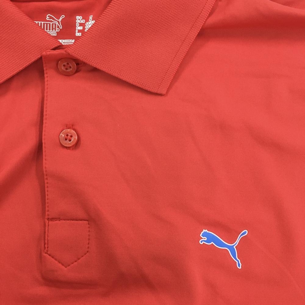 【美品】プーマ 半袖ポロシャツ レッド ロゴブルー メンズ US-M ゴルフウェア PUMA