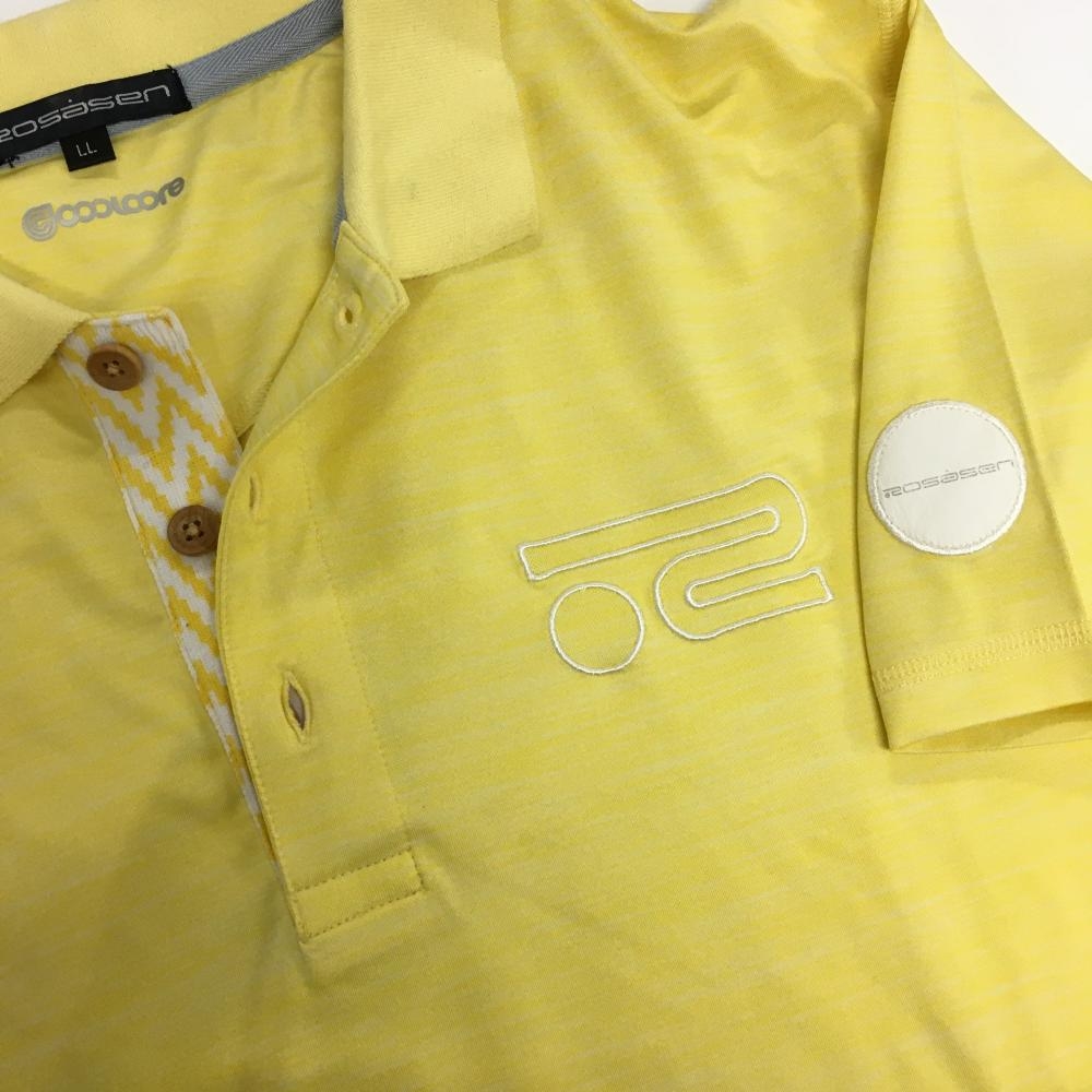 ロサーセン 半袖ポロシャツ 杢イエロー×白 袖ワッペン メンズ LL ゴルフウェア Rosasen