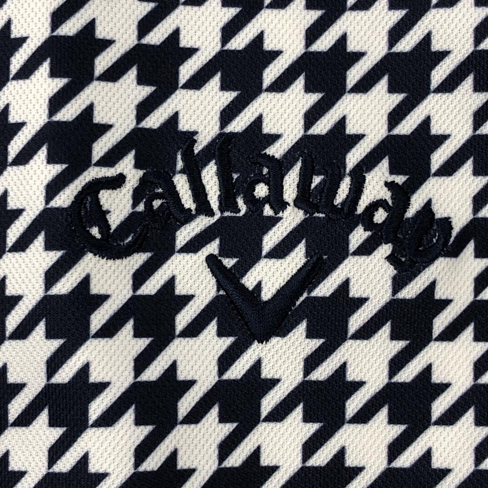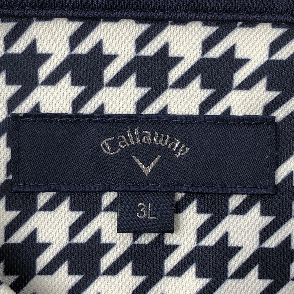 【超美品】キャロウェイ 半袖ポロシャツ 白×ネイビー 千鳥格子 ボタンダウン メンズ 3L ゴルフウェア 大きいサイズ Callaway