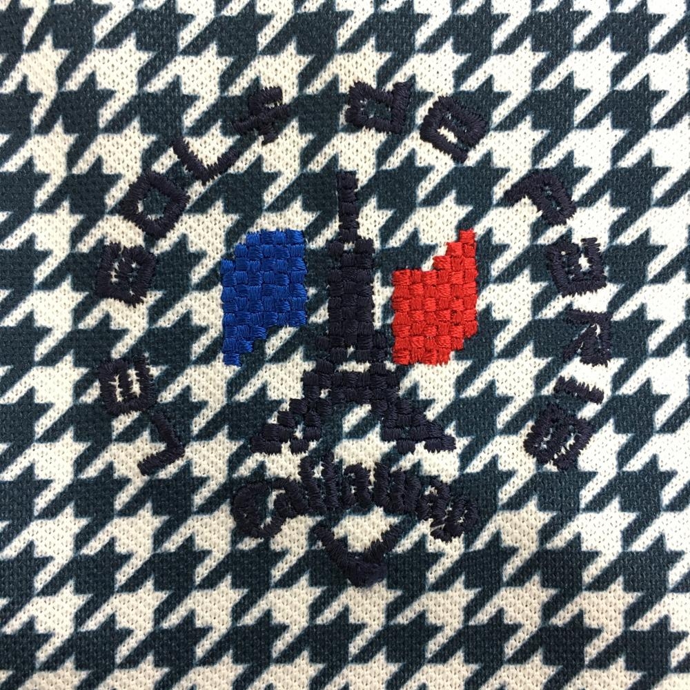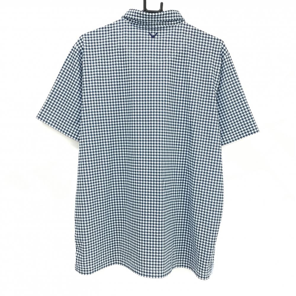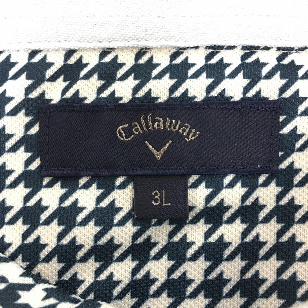 【超美品】キャロウェイ 半袖ポロシャツ 白×ネイビー 千鳥格子 ボタンダウン メンズ 3L ゴルフウェア 大きいサイズ Callaway