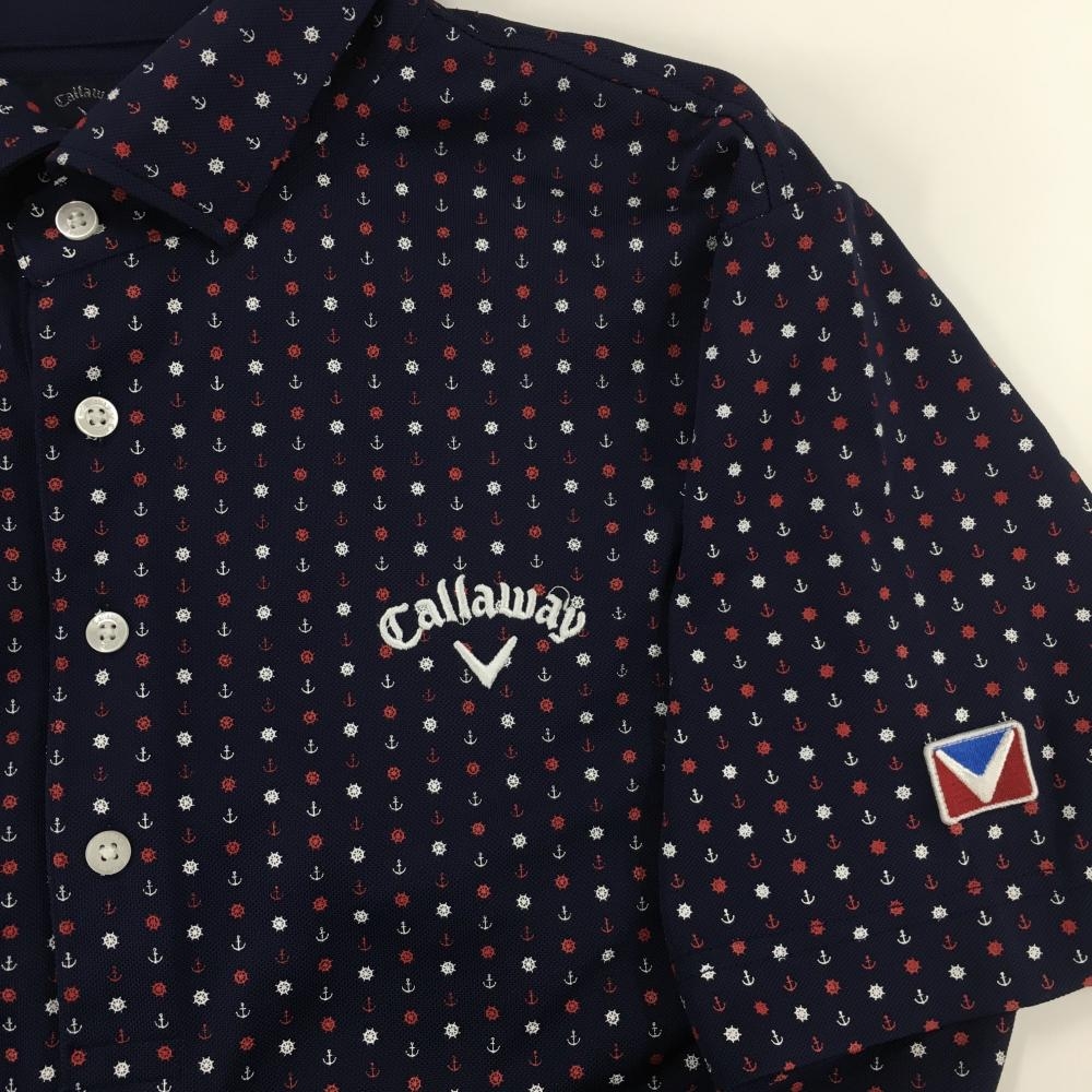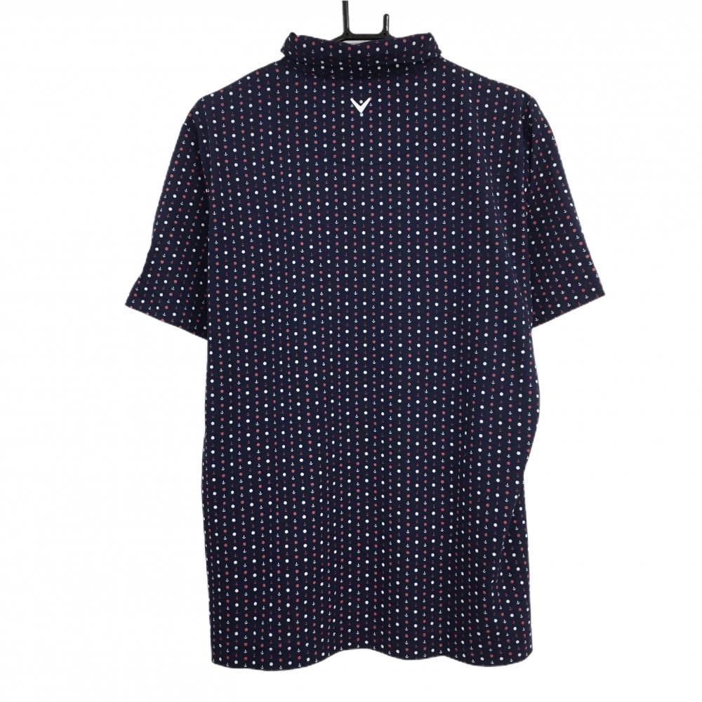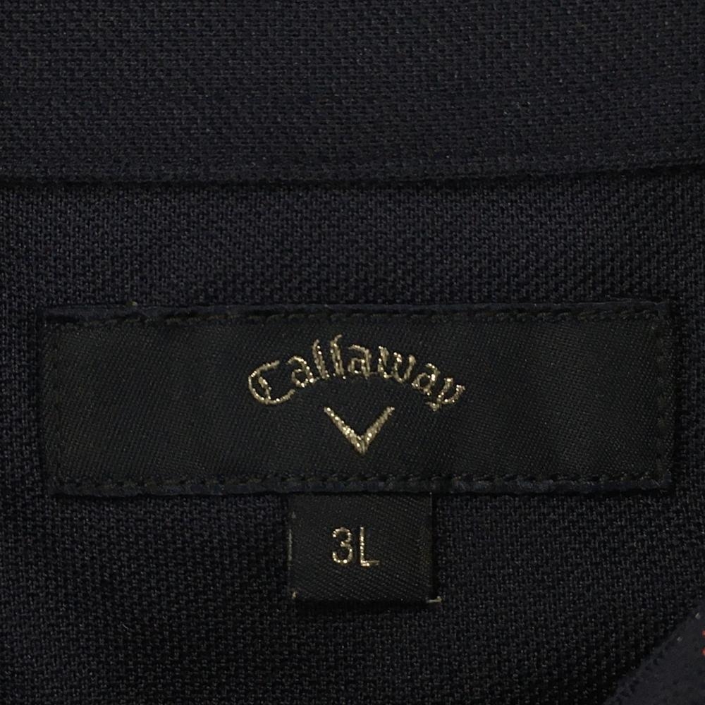 【超美品】キャロウェイ 半袖ポロシャツ ネイビー×白×レッド 総柄 ロゴ刺しゅう メンズ 3L ゴルフウェア 大きいサイズ Callaway