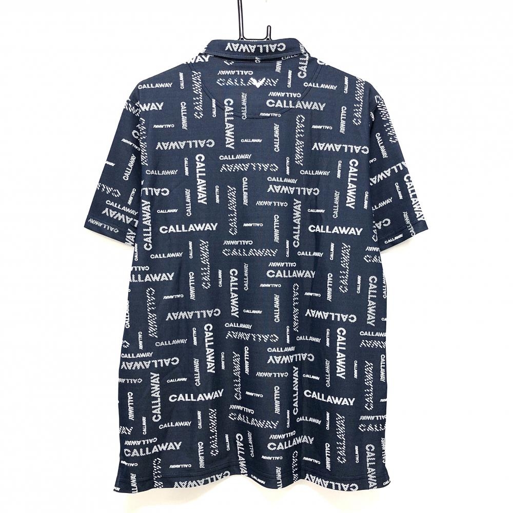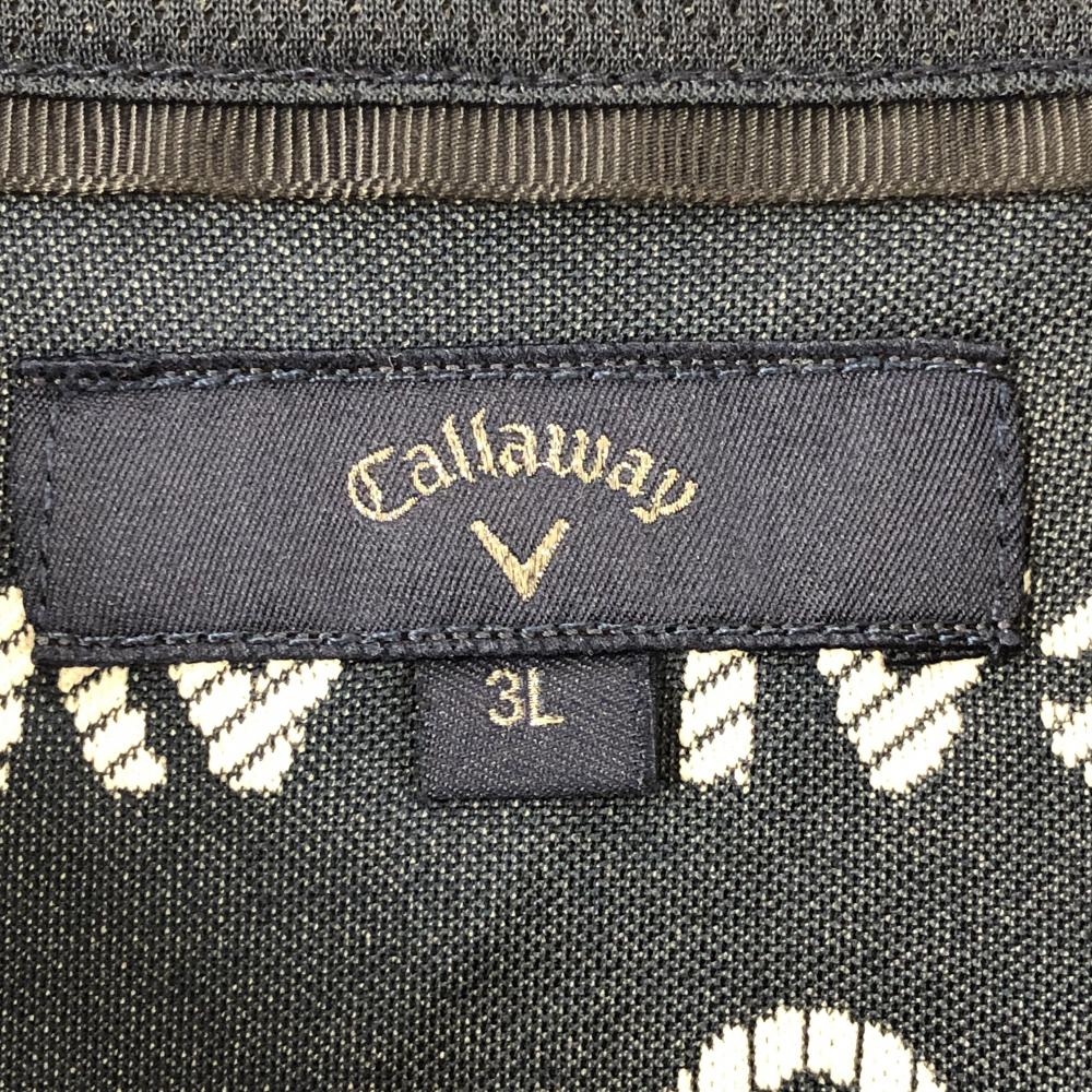 【超美品】キャロウェイ 半袖ポロシャツ ネイビー×白 ロゴ総柄 ジャガード メンズ 3L ゴルフウェア 2023年モデル 大きいサイズ Callaway