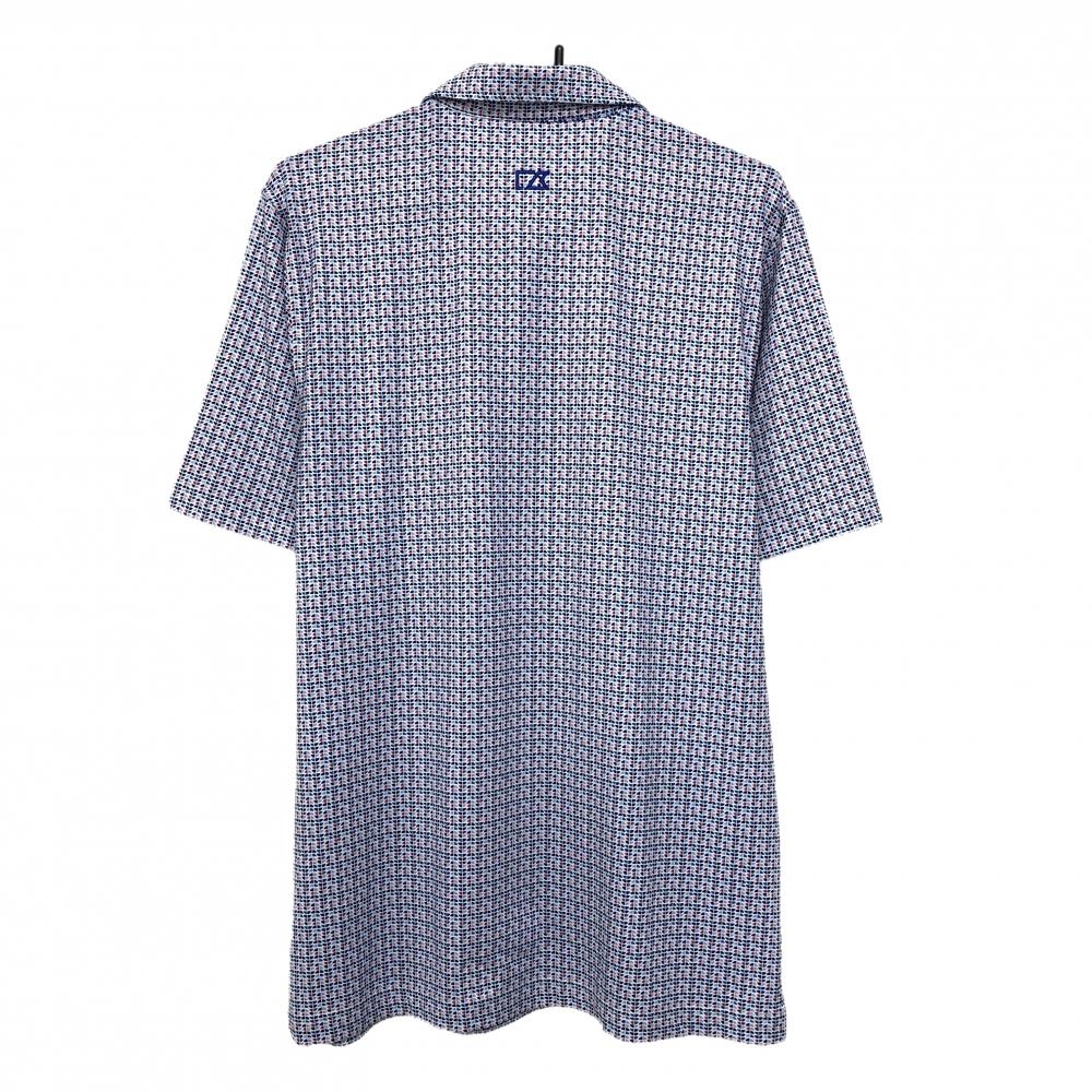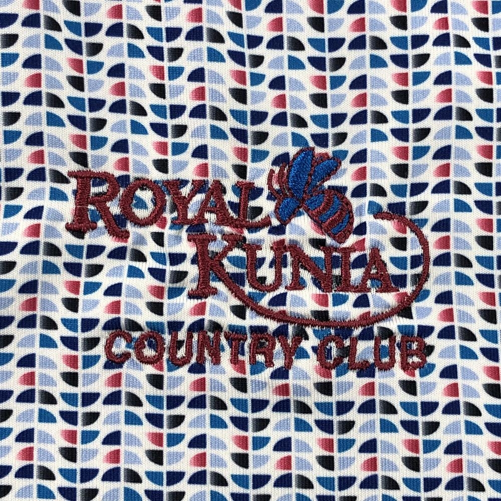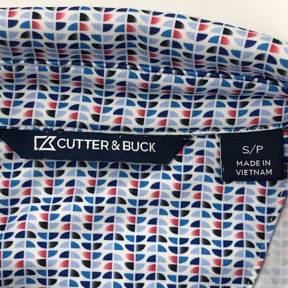 【超美品】カッターアンドバック 半袖ポロシャツ 白×ブルー×レッド 総柄 ROYAL KUNLA メンズ S/P ゴルフウェア CUTTER&BUCK